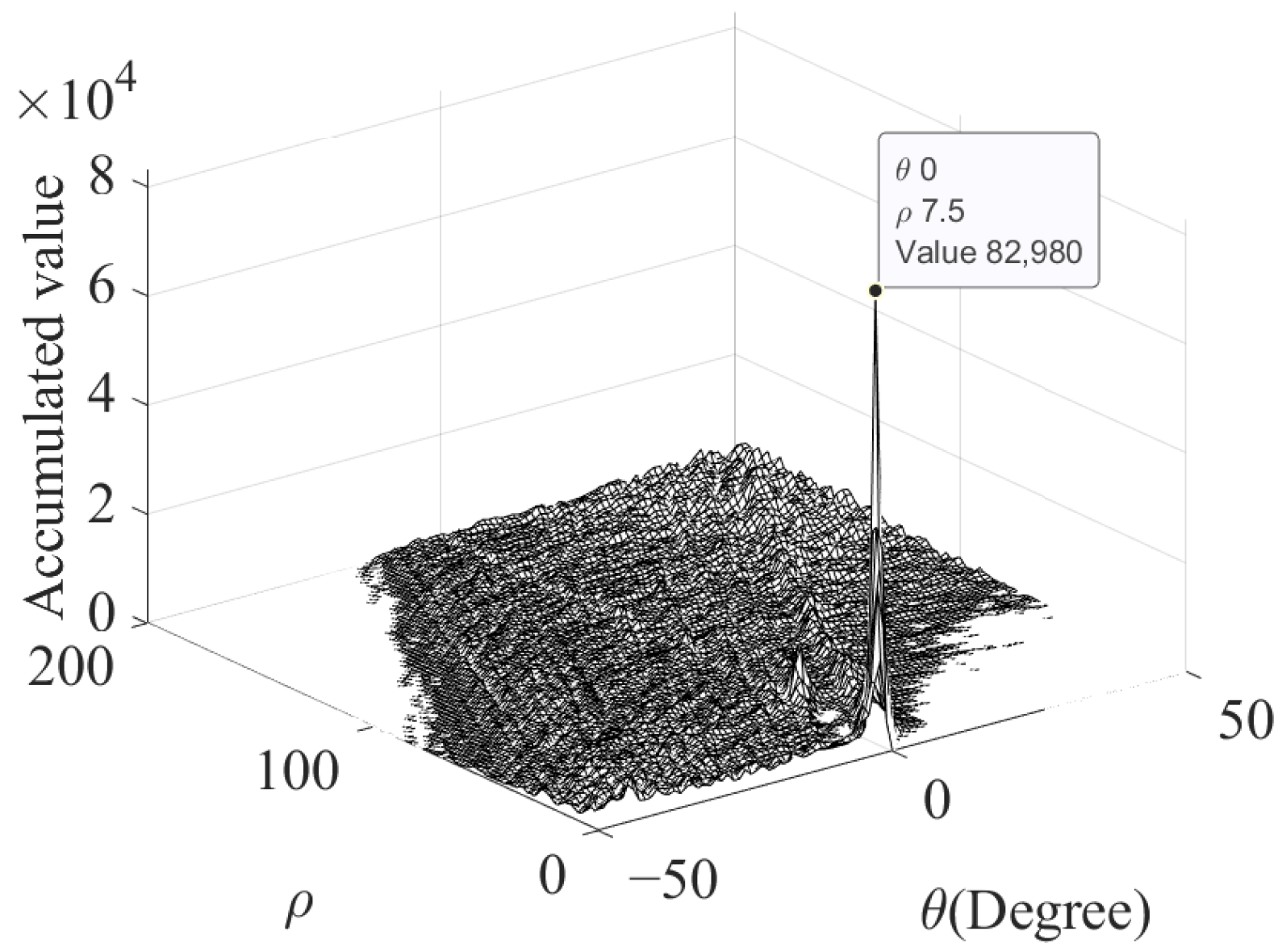 Hough parameter accumulation result of Figure 13.