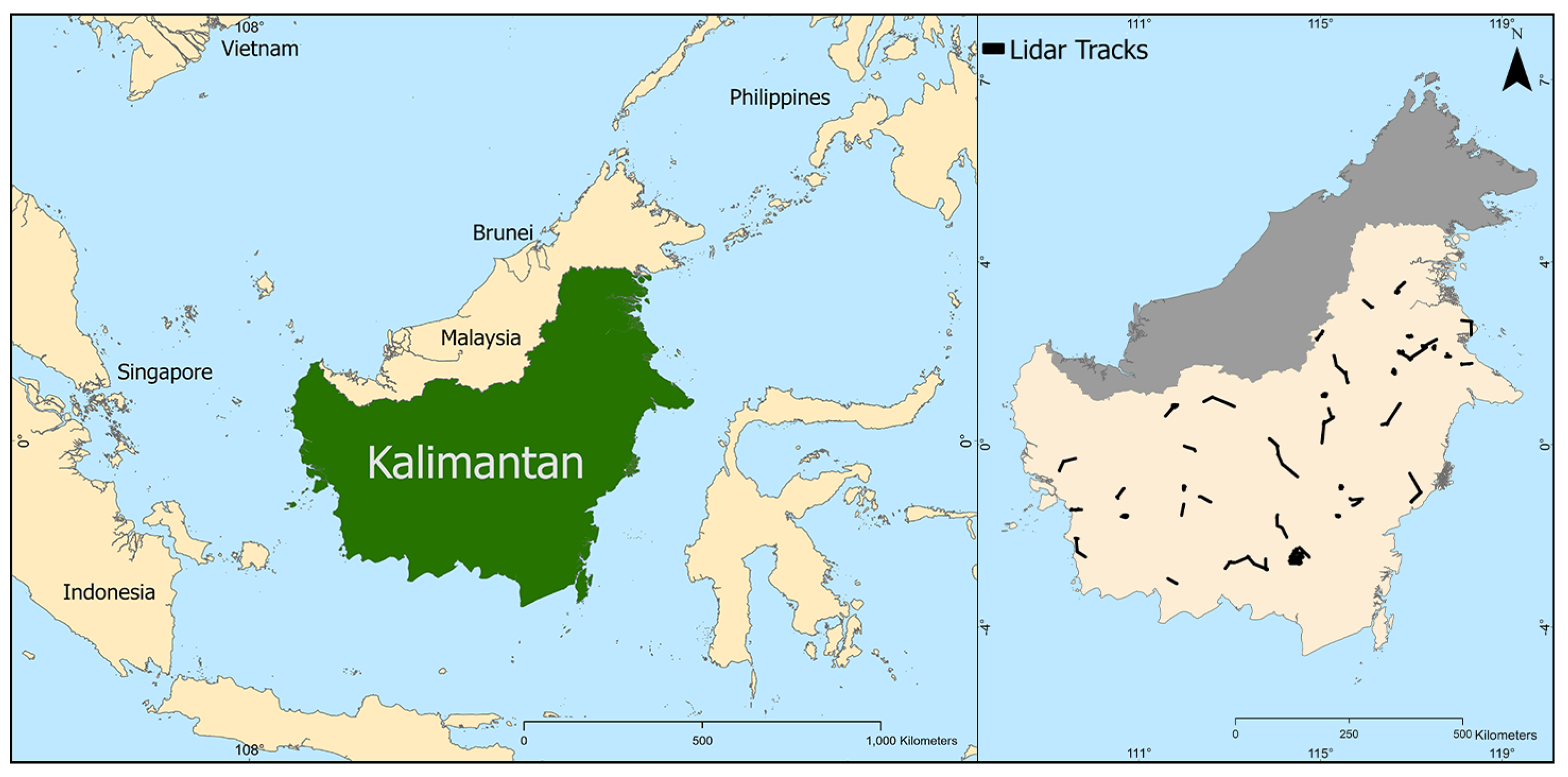 | Land Use/Land Cover | Land Cover classification of Kalimantan—includes types of forests, other natural habitats, and developed lands | 2011 | 30 m | Indonesian Ministry of Forestry |