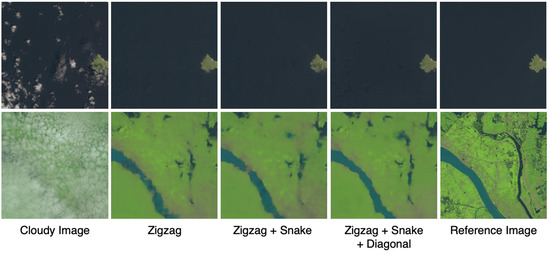 - Singh, P.; Komodakis, N. Cloud-gan: Cloud removal for sentinel-2 imagery using a cyclic consistent generative adversarial networks. In Proceedings of the IGARSS 2018—2018 IEEE International Geoscience and Remote Sensing Symposium, Valencia, Spain, 22–27 July 2018; pp. 1772–1775. [Google Scholar]