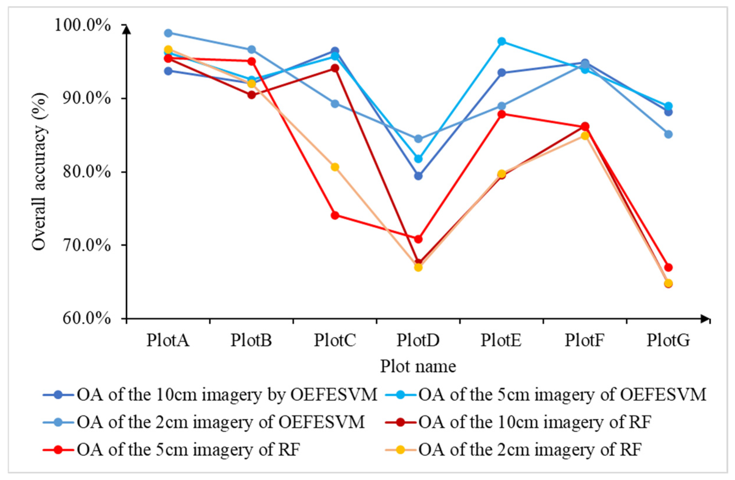 3.1. Quantitative Comparison of Classification Overall Accuracy