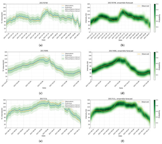 - Meng, F.; Yao, Y.; Wang, Z.; Peng, S.; Xu, D.; Song, T. Probabilistic forecasting of tropical cyclones intensity using machine learning model. Environ. Res. Lett. 2023, 18, 044042. [Google Scholar] [CrossRef]