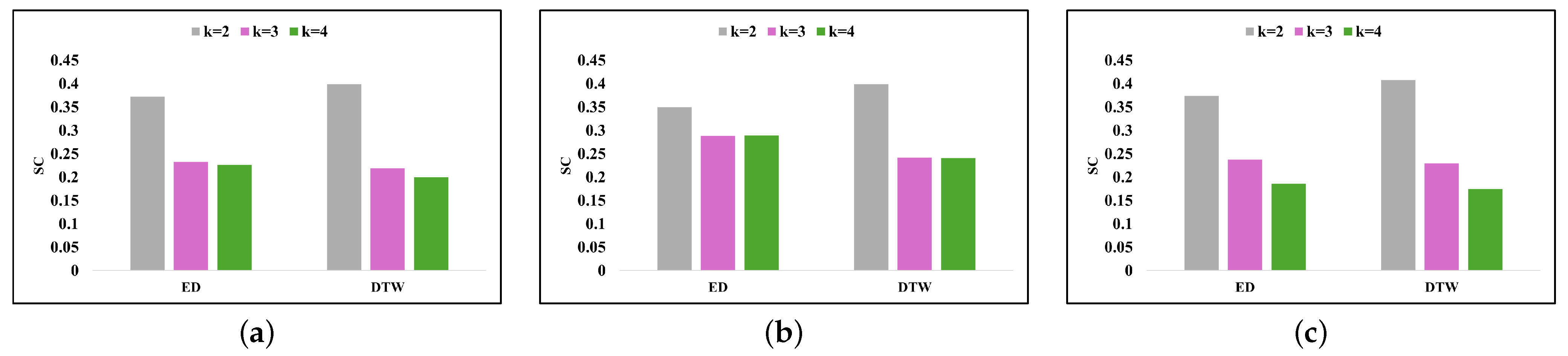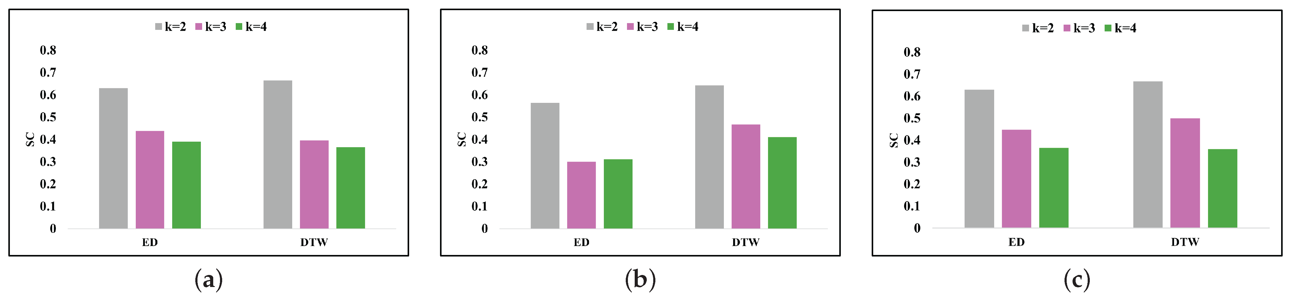 - Tavenard, R.; Faouzi, J.; Vandewiele, G.; Divo, F.; Androz, G.; Holtz, C.; Payne, M.; Yurchak, R.; Rußwurm, M.; Kolar, K.; et al. Tslearn, A Machine Learning Toolkit for Time Series Data. J. Mach. Learn. Res. 2020, 21, 1–6. [Google Scholar]