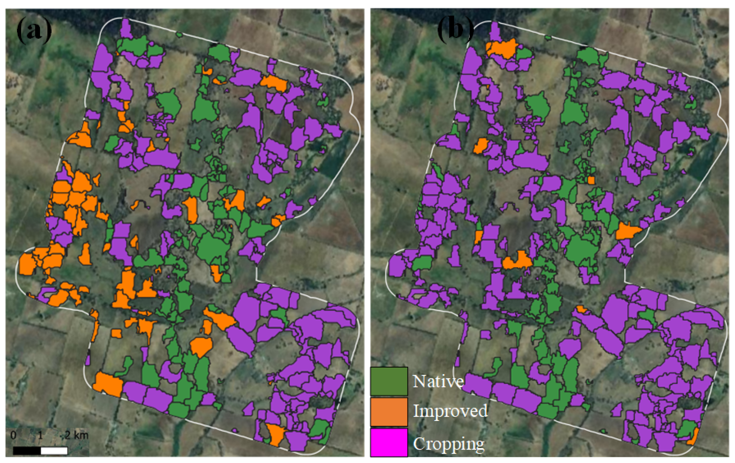 - We perform a biannual cluster analysis over six years to examine pasture dynamics and transitions. The analysis reveals that improved pasture and cropping areas experience frequent changes, whereas the native pastures comparatively remain stable.