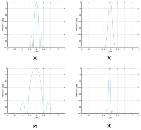 where the 3 dB width of 0.6368 in the elevation direction is obtained by solving the dual-sinc joint function using Newton’s method. Using the simulation parameters provided in Table 2, the theoretical elevation resolution is calculated as 0.1500 m through substitution into (36). Quantitative results for both resolution and computational efficiency are summarized in Table 3.