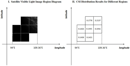 To explore spatial inconsistencies caused by fixed time segmentation, we selected data from 6:00 on 25 June 2019, covering both the eastern coastal (25.51°N∼35.75°N, 99.12°E∼109.24°E) and western inland (20.39°N∼30.63°N, 94.00°E∼109.24°E) regions of China. The study area was divided into multiple 512 km2 sub-regions to evaluate synthesis consistency under uniform time-based classification. The results demonstrate significant sunrise timing variation across these regions, resulting in non-uniform illumination conditions. This discrepancy introduced visible channel noise in western regions when using a fixed classification time, thereby reducing radar synthesis accuracy.