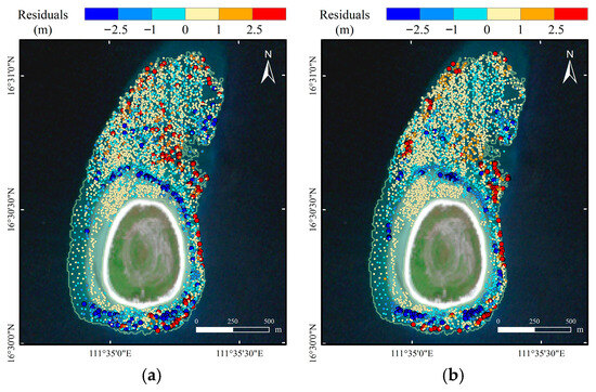 Residual distribution of in situ points on Ganquan Island. (a) Control group. (b) Optimized group.