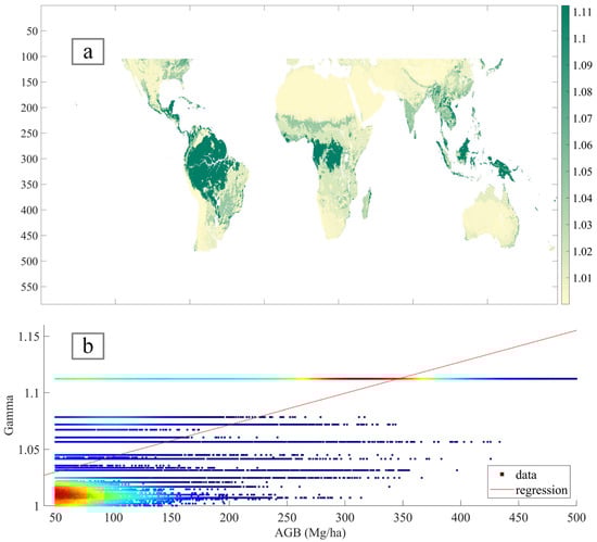 (a) Global map at 25 km resolution with SMAP Successful Retrieval flag, (b) vs. AGB > 50 Mg/ha ().
