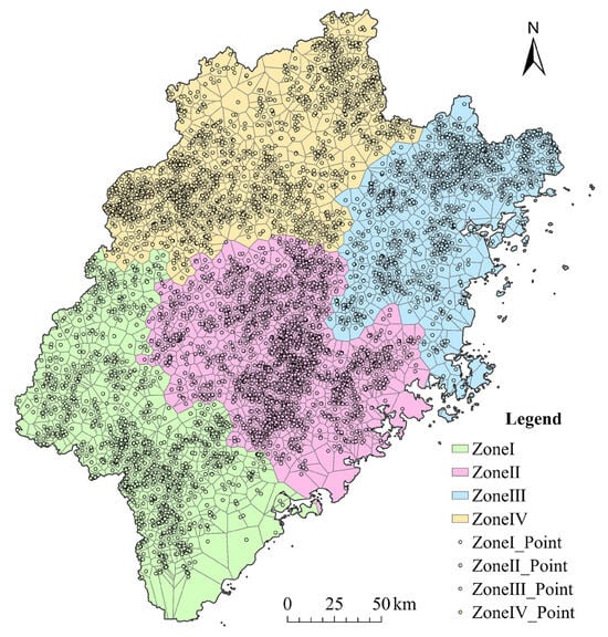 - A partitioning method considering the differences between regions was applied within the study area, effectively addressing the issue of spatial heterogeneity between regions.