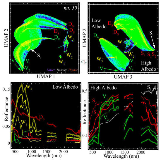 - McInnes, L.; Healy, J.; Melville, J. UMAP: Uniform Manifold Approximation and Projection for Dimension Reduction. arXiv 2020, arXiv:1802.03426. [Google Scholar] [CrossRef]