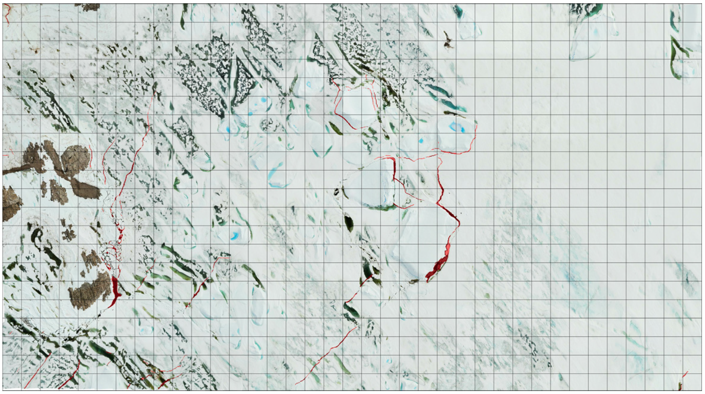 - Li, W.; Lu, P.; Li, C.J.; Zhuang, F.; Lu, C.; Li, G.Y. Morphological Analysis of Cracks on the Ice Surface of Wuliangsuhai Lake in the Winter 2017–2018. J. Glaciol. Geocryol. 2020, 42, 919–926. (In Chinese) [Google Scholar]