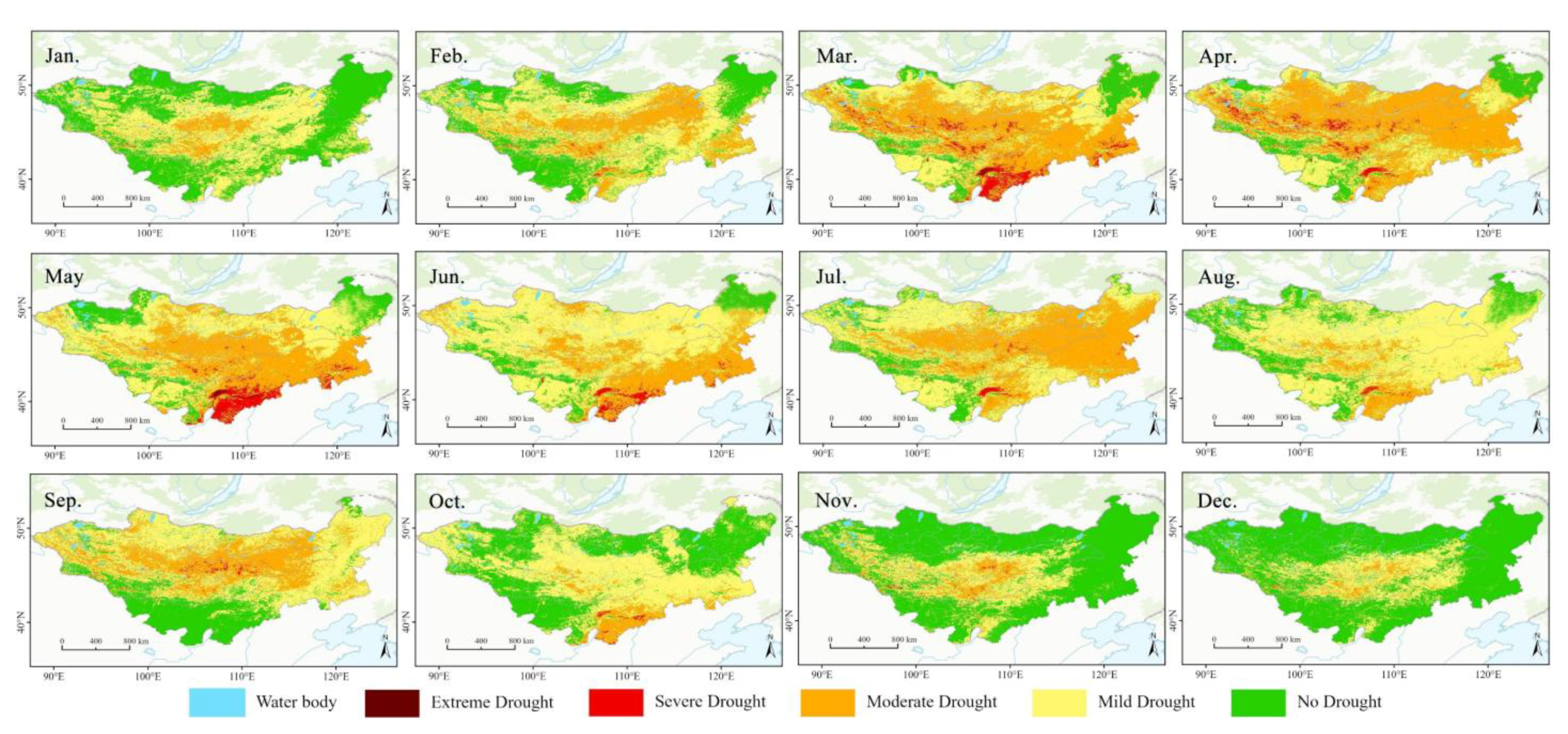 MonthExtreme DroughtSevere DroughtModerate DroughtMild DroughtNo Drought
