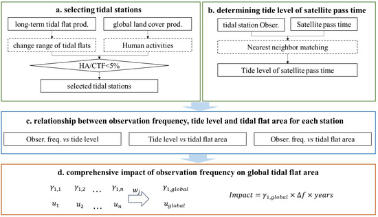 Finally, the quantitative impact of satellite observation frequency on the mapped tidal flat area was calculated according to the globally weighted . The impact of satellite observation frequency on the mapped total flat area can be calculated as,