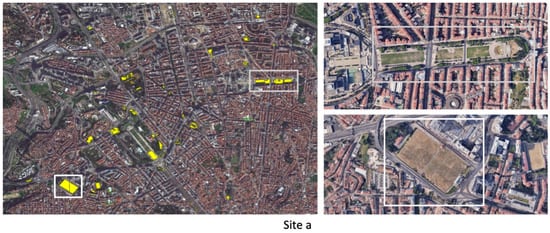 The type of GRs existing in the city of Lisbon is very diverse (Figure 3) and encompasses a diverse set of buildings, including residential, corporate, and governmental structures, as well as diverse types of vegetation (Figure 3).