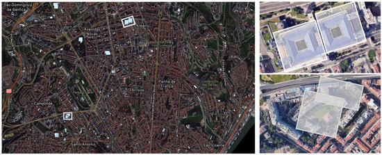The proposed methodology combines the use of the NDVI vegetation index, estimated over a high-resolution multispectral image, with geometric information about the building’s footprint, in a GIS environment. Several challenges had to be overcome: (i) the inaccurate georeferencing of the high-resolution satellite image and its non-nadiral geometric acquisition; (ii) the outdated data provided by Lisbon municipality, with building footprints for a group of buildings that no longer exist as they have been demolished, groups of buildings grouped into a single feature, and all buildings lacking information about underground geometries; and (iii) the presence of trees in the streets (and their shadows), which lead to the incorrect identification of top-level GR.