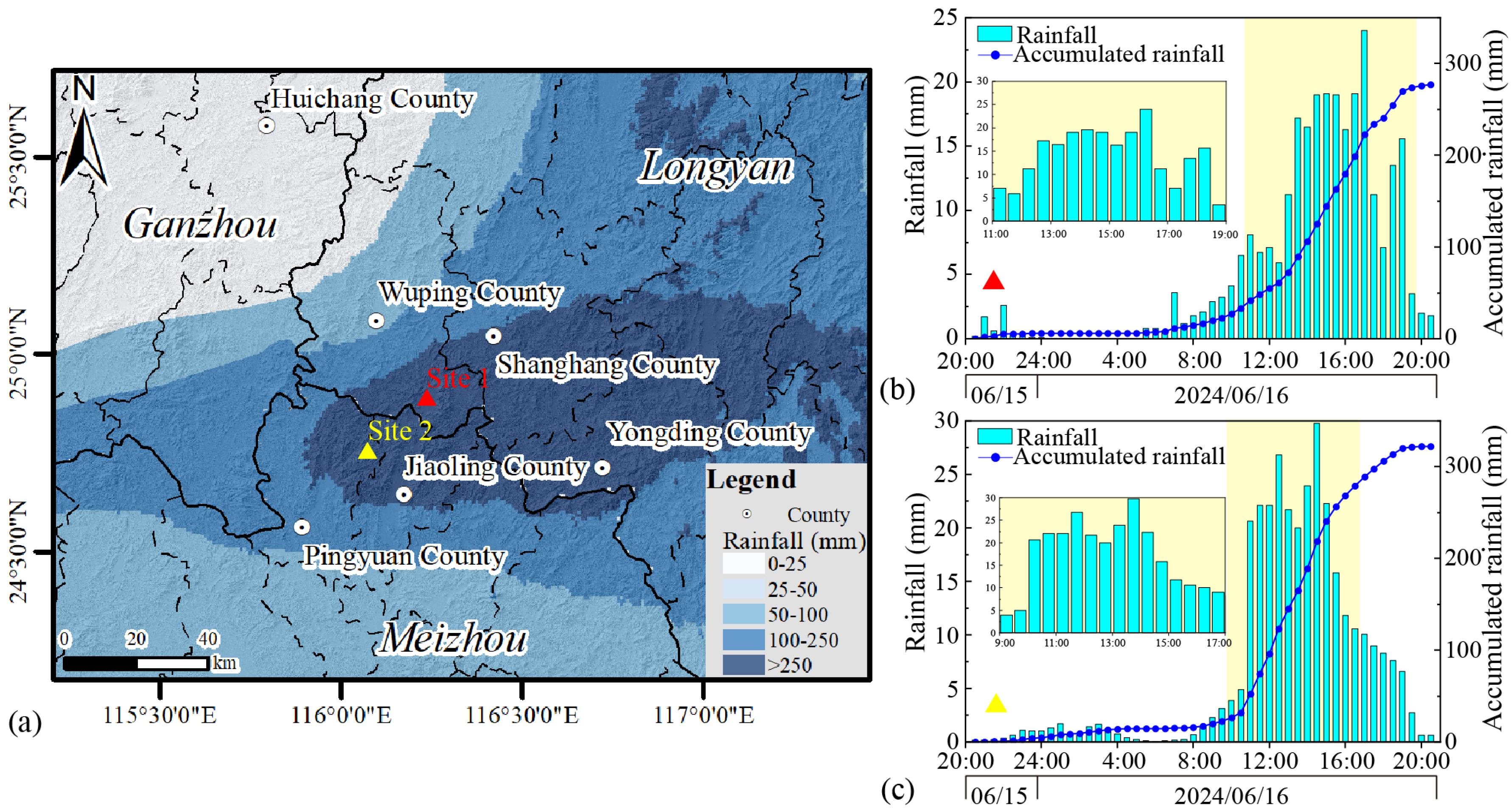 - Yi, X.; Zhao, J.; Feng, W.; Guo, C.; Zhao, Y.; Xue, Z.; Li, S. Data-Driven Insights into the Characteristics and Drivers of the June 16, 2024 Clustered Shallow Landslides in Southeastern China. Landslides 2025, 22, 3049–3064. [Google Scholar] [CrossRef]