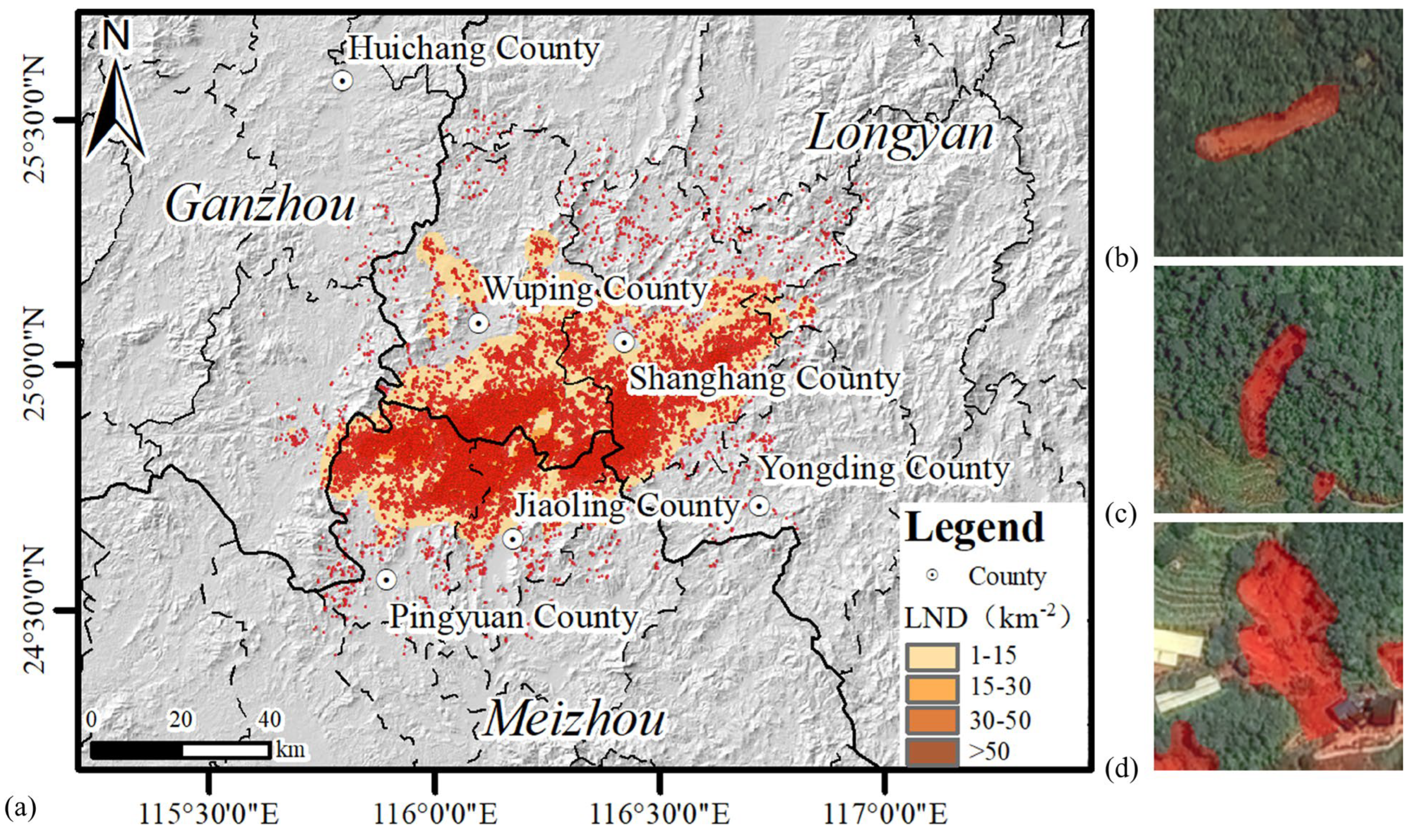 - Li, S.; Feng, W.; Yi, X.; Liu, K.; Guo, C.; Tang, X.; Wu, Z. Clustered Shallow Landslides Triggered by Heavy Rainfall in May 2022 in Wuping County, Fujian Province, China. Bull. Eng. Geol. Env. 2025, 84, 257. [Google Scholar] [CrossRef]
