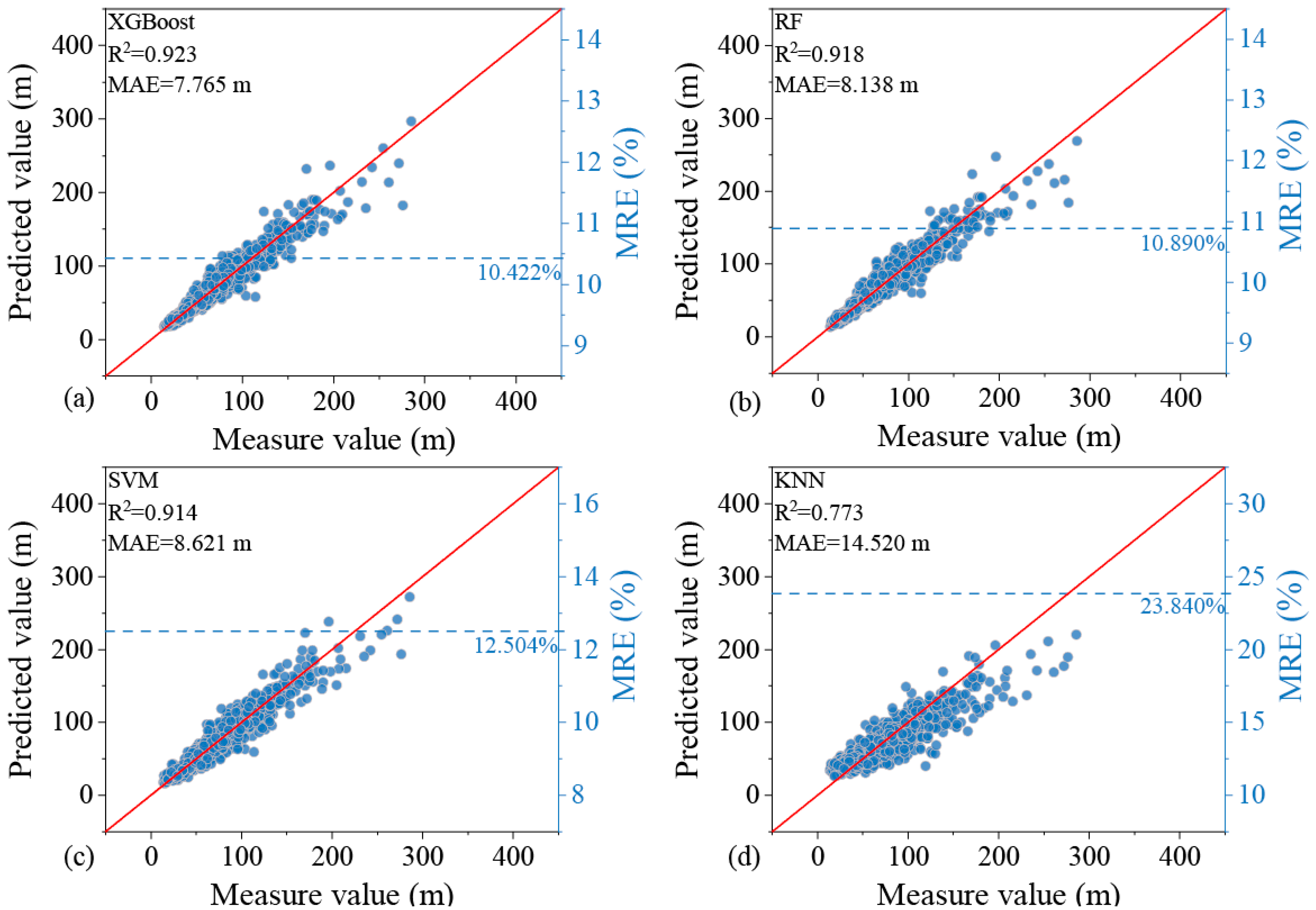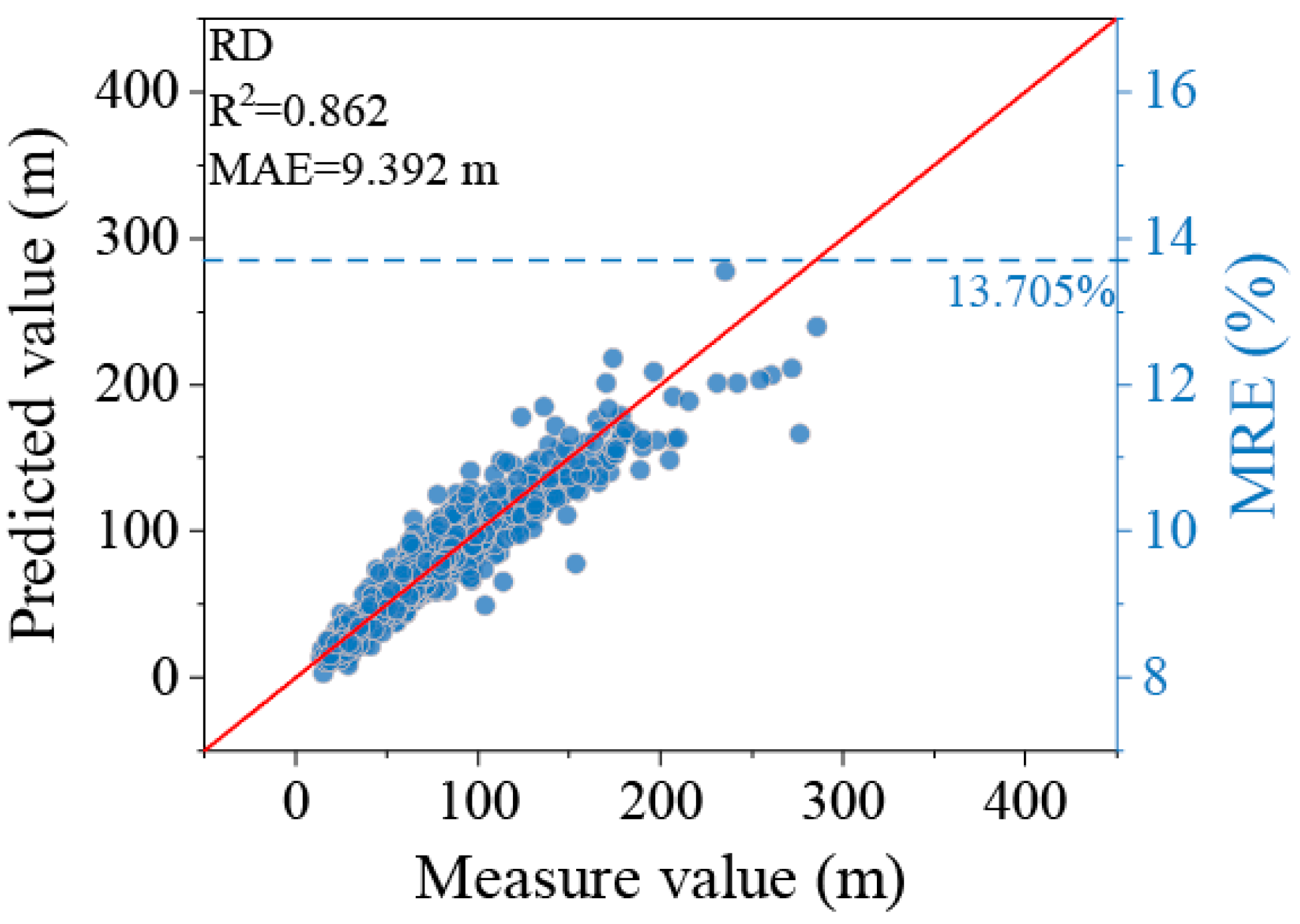 | RF | N_estimators: (100, 500) Max_depth: (5, 30) Min_samples_split: (2, 20) Min_samples_leaf: (1, 10) | N_estimators: The number of decision trees in the integrated model Max_depth: The maximum depth of each decision tree Min_samples_split: The minimum number of samples required to split an internal node Min_samples_leaf: The minimum number of samples required for leaf nodes (terminal nodes) |
