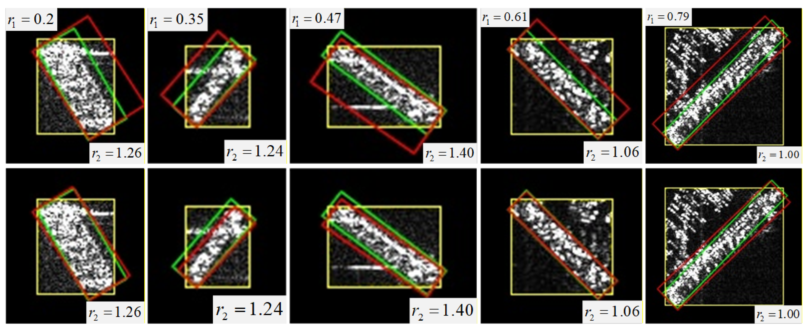 All experiments were conducted on two NVIDIA GeForce RTX 4090 GPUs using the MMRotate and Ultralytics detection frameworks. For the MMRotate implementation, we employed the AdamW optimizer with an initial learning rate of , with and , trained for 72 epochs with a batch size of 4. The loss weights for the first-stage loss were set to , , and . For the second-stage loss , the term was weighted by . Under the Ultralytics framework, training was performed using the SGD optimizer with an initial learning rate of and a momentum of , for 200 epochs with a batch size of 32.