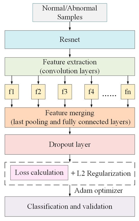 ResNet represents a breakthrough in CNN architecture, effectively resolving the common problems of vanishing and exploding gradients. This framework was first introduced during the 2015 ImageNet Large Scale Visual Recognition Challenge (ILSVRC), enabling the successful training of much deeper models [28]. Owing to its outstanding performance, ResNet has achieved leading results in several computer vision challenges and has been widely implemented across various tasks, including image classification [69,70], object detection [71,72], and semantic segmentation [73,74]. In ResNet, the initial input is directly linked to the next layer of neurons, reducing the residual (difference) between the input and the output. When the input x is passed directly to the output of the network, the learning objective is adjusted, as expressed by: