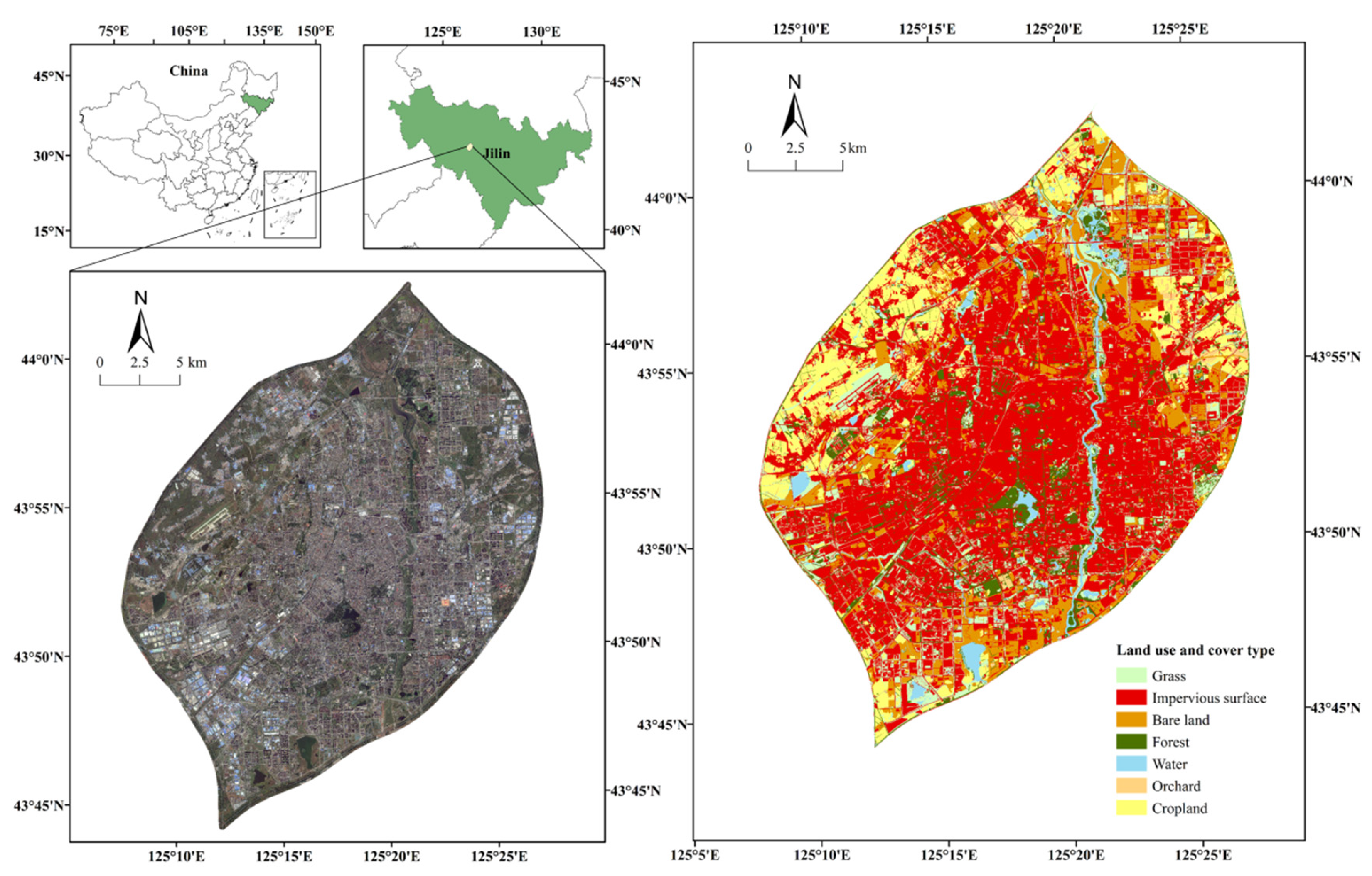 - Impervious surface-grassland landscape (GI, grassland-dominated, 30–40% grassland and 20–30% impervious surface).