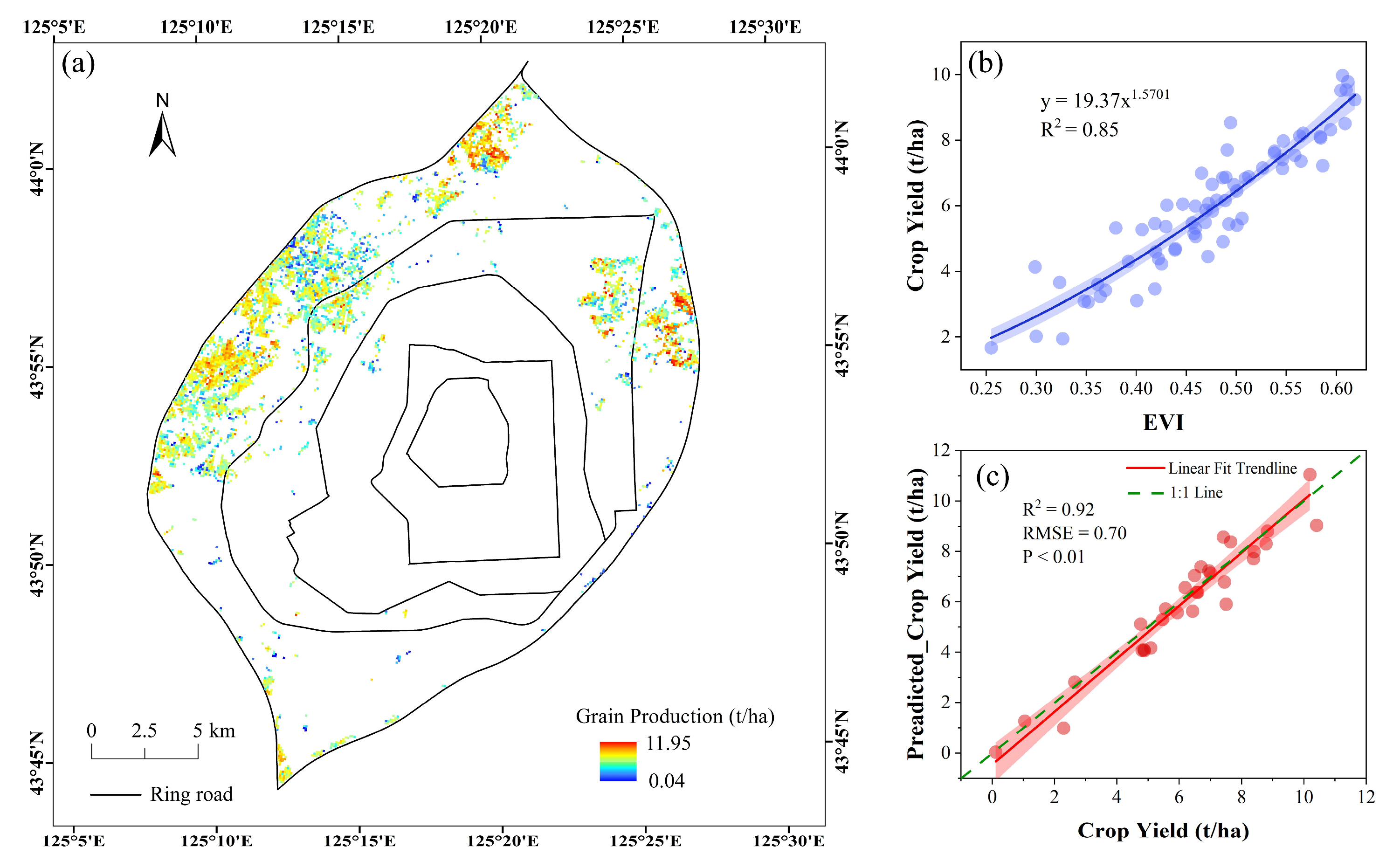 Meng, F.; Ren, Z.; Zhang, P.; Wang, C.; Hong, S.; Geng, R.; Hong, W.; Wang, X.; Huang, B.; Zhang, B.; et al. Estimation of the Relationship Between Urban Landscape Pattern and Crop Yield by Remote Sensing Data and Field Measurement. Remote Sens. 2025, 17, 3667. https://doi.org/10.3390/rs17223667