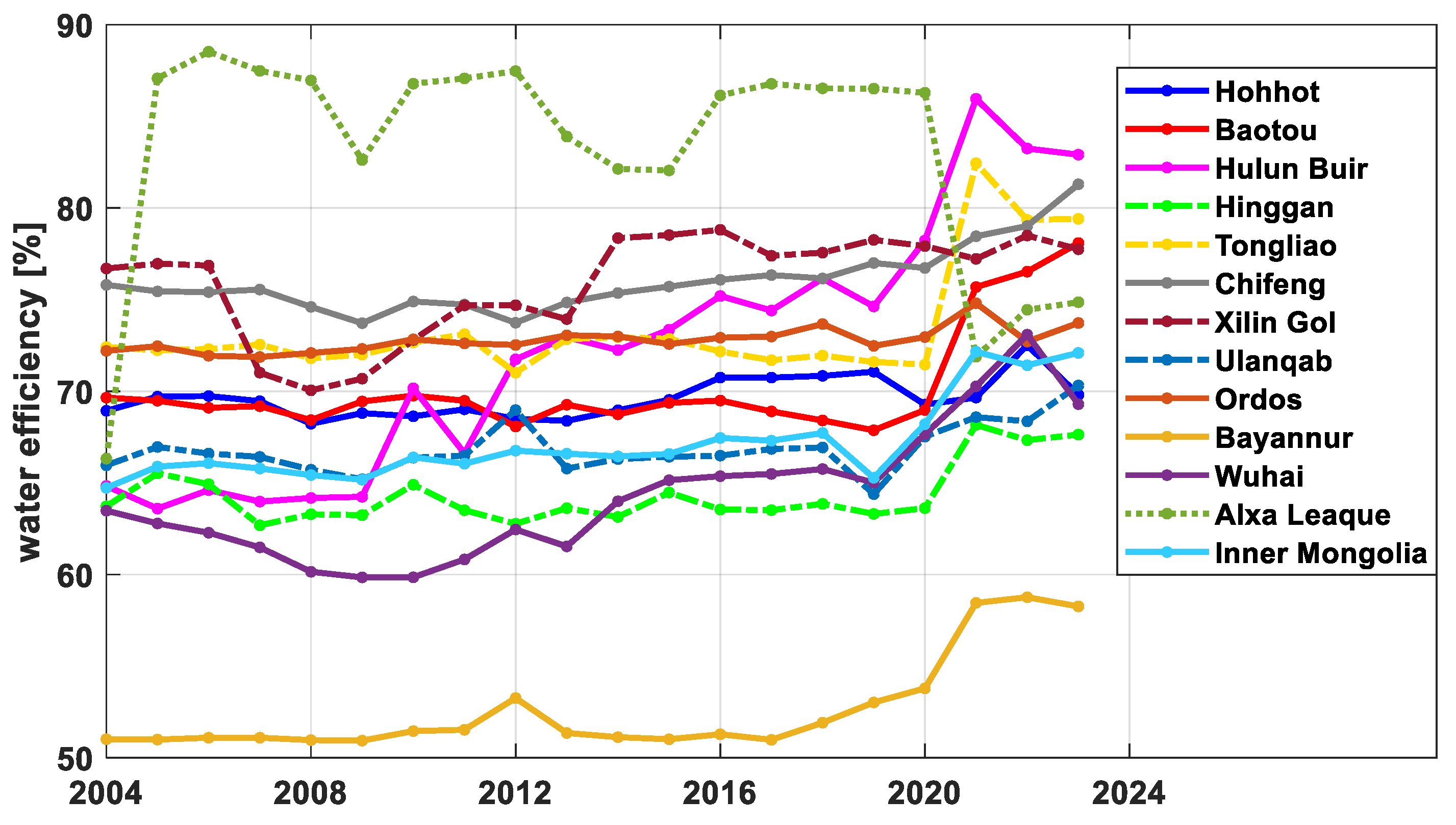 | Hohhot | ↓2002.4–2025.1 | ↓2002.4–2025.1 | P↑; SW↓; GW↓ | SW↓; GW↑ |