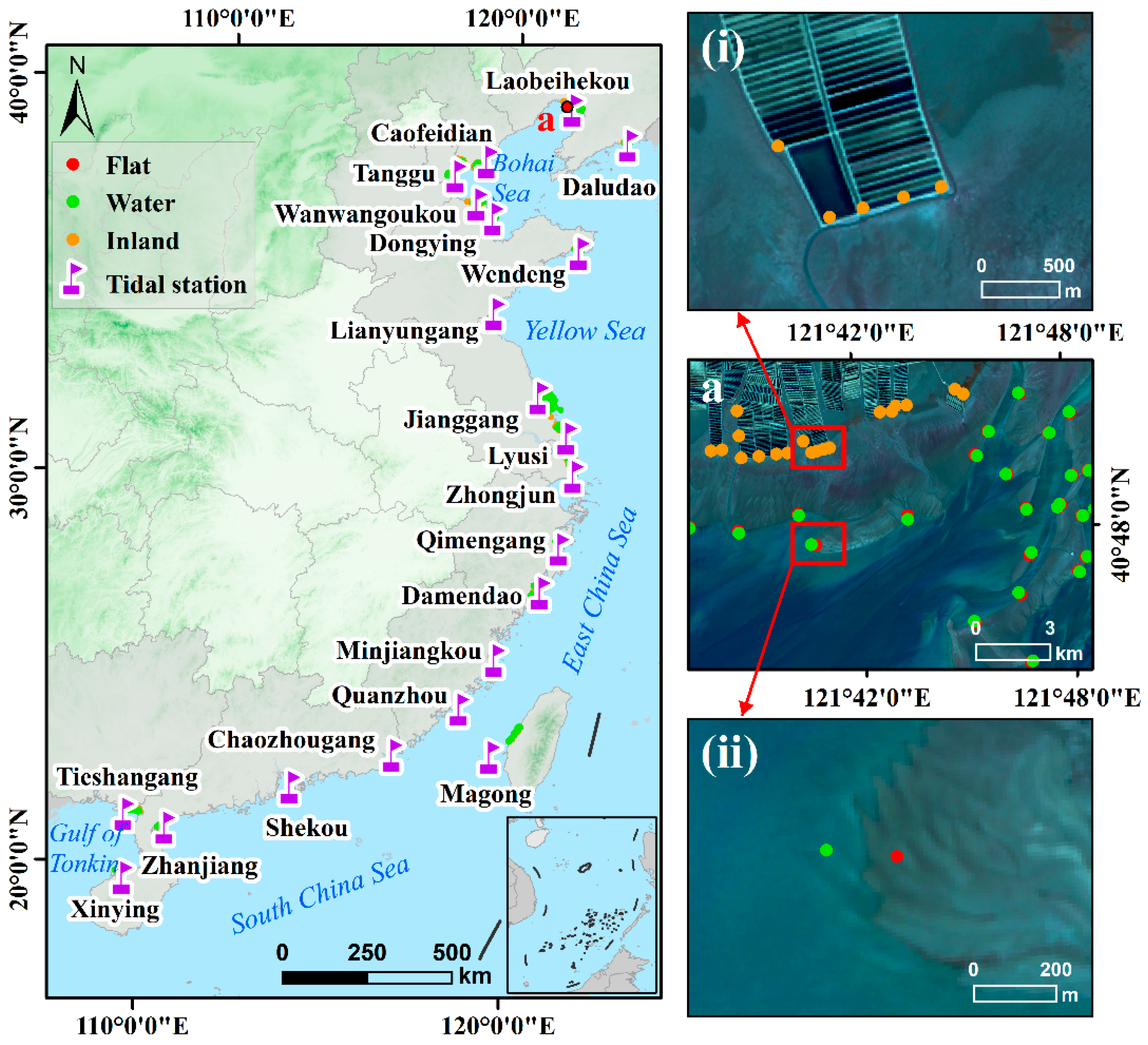 - Zhang, X.; Liu, L.; Wang, J.; Zhao, T.; Liu, W.; Chen, X. Automated Mapping of Global 30-m Tidal Flats Using Time-Series Landsat Imagery: Algorithm and Products. J. Remote Sens. 2023, 3, 0091. [Google Scholar] [CrossRef]