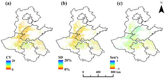 In this study, the MODIS (Moderate Resolution Imaging Spectroradiometer) imagery acquired at 8-day intervals during the winter wheat growth period in the Huang-Huai-Hai region between 2016 and 2021 was utilized. The satellite data were accessed via the Google Earth Engine (GEE) platform, which serves as a cloud-based platform providing access to and processing of multi-source remote sensing datasets. The MODIS products offer high temporal resolution (8-day composites) and moderate spatial resolution (500 m), which makes them well-suited for large-scale crop growth monitoring and the analysis of dynamic changes over time. Based on the MOD09A1 product, five vegetation indices were calculated and used for subsequent data analysis (Table 1).