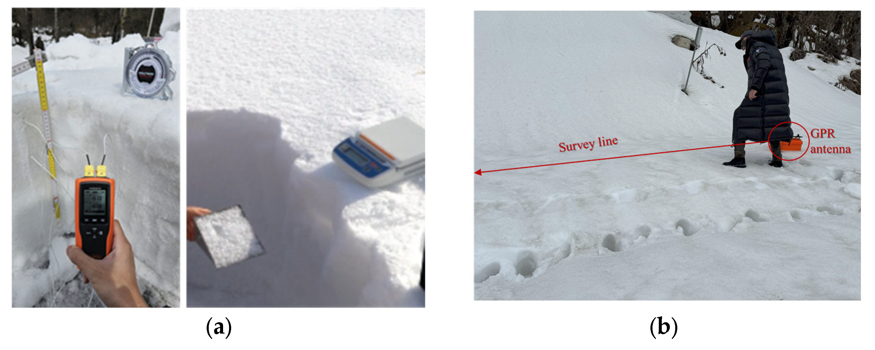 15]. These techniques enable monitoring of snow stratigraphy and the spatiotemporal evolution of key physical parameters. In recent years, Ground-Penetrating Radar (GPR) has gained increasing attention due to its ability to non-invasively capture internal snowpack structures with adequate penetration depth and mobility [
