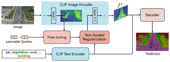 - Cho, S.; Shin, H.; Hong, S.; Arnab, A.; Seo, P.H.; Kim, S. Cat-seg: Cost aggregation for open-vocabulary semantic segmentation. In Proceedings of the IEEE/CVF Conference on Computer Vision and Pattern Recognition, Seattle, WA, USA, 17–21 June 2024; pp. 4113–4123. [Google Scholar]