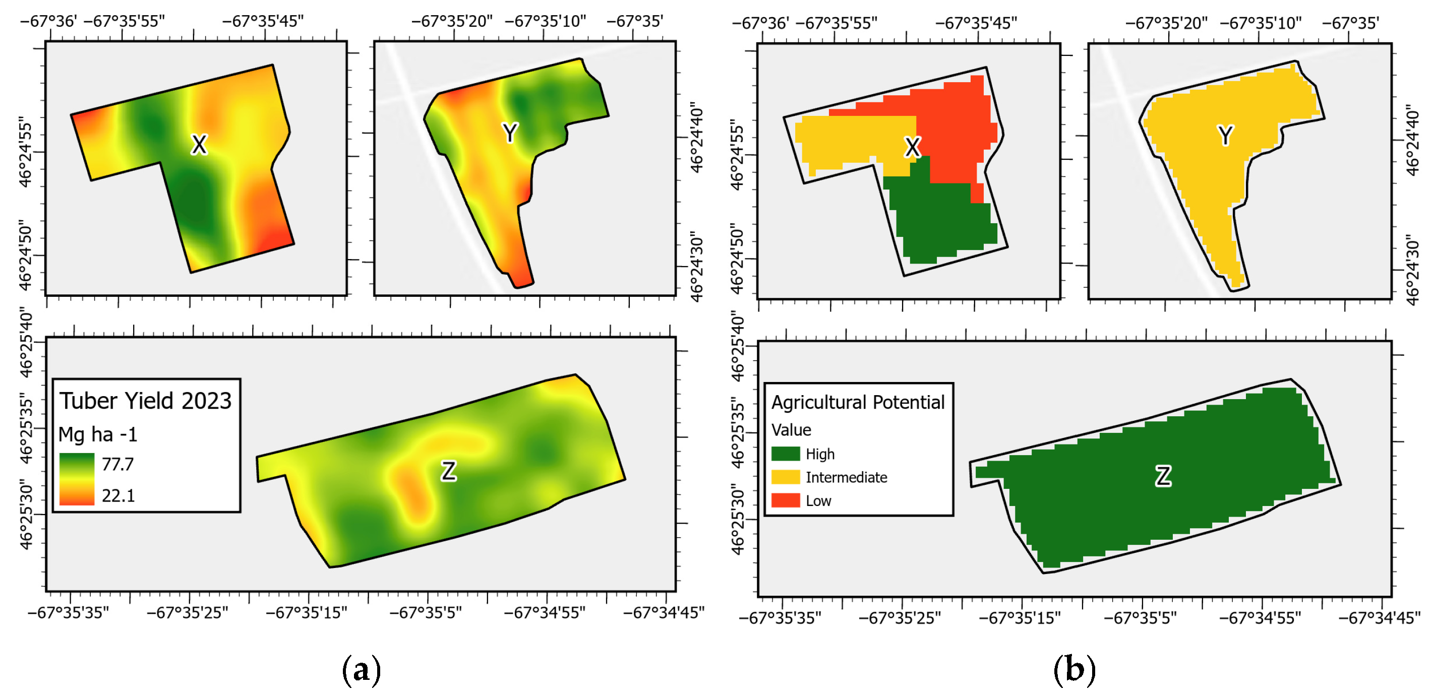 Figure 3). Even though certain years included rotation crops instead of potatoes, the significant correlations between the AP MZs and tuber yield highlights the robustness of the methodology.