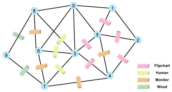 This figure shows the node connectivity diagram and illustrates the obstructions between nodes. The numbers in the figure represent node numbers.