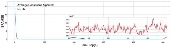 The results are presented in Figure 18, which displays the SRAMSE evolution curves for both the DSTS and the average-consensus algorithm over the entire test process. While both algorithms converge to a stable synchronization state, there are significant differences in their final synchronization accuracy and stability.