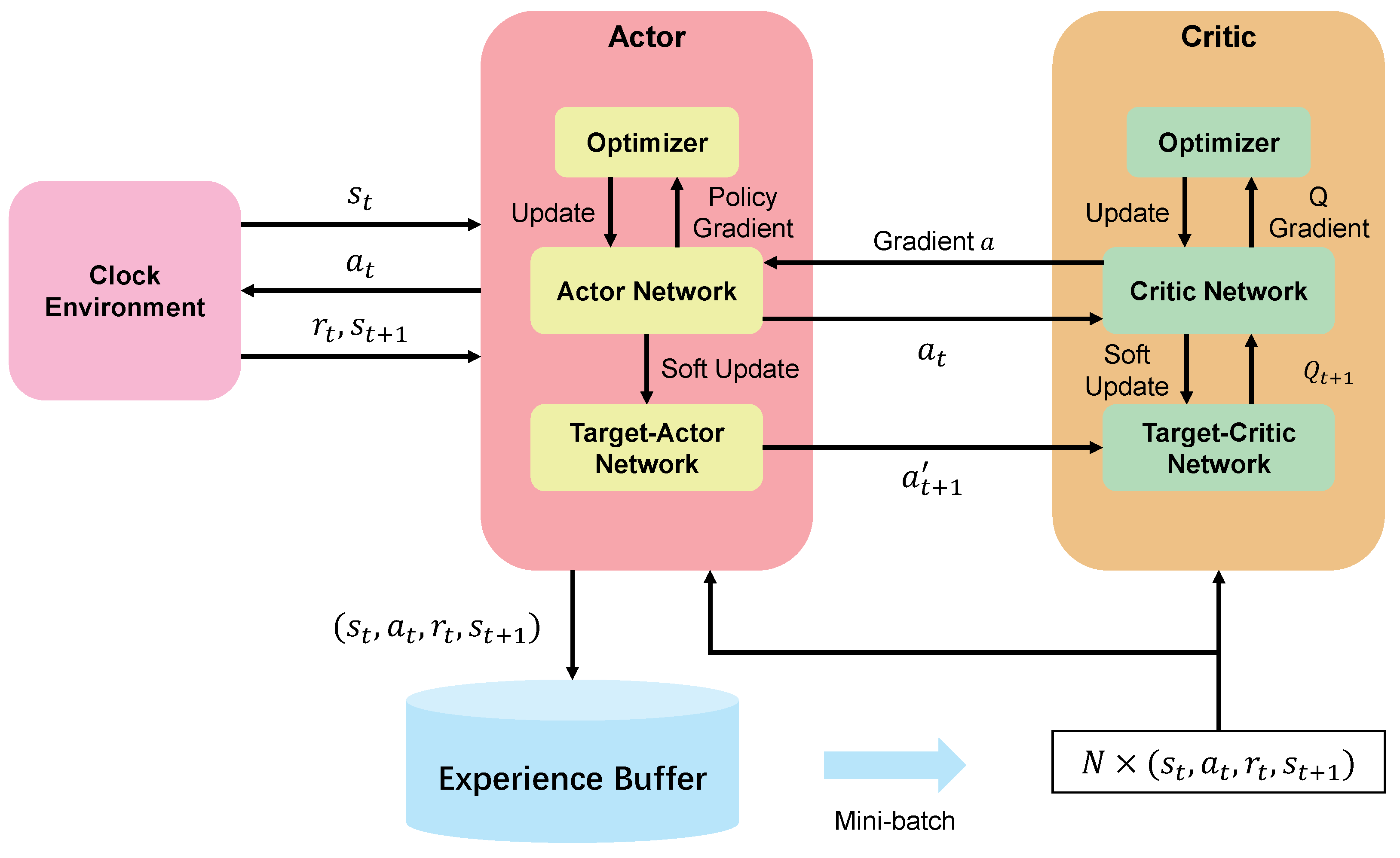 Adaptive Synchronization Strategy via Reinforcement Learning: We leverage the DDPG algorithm to train each node as an intelligent agent capable of learning an optimal, adaptive synchronization policy. This agent dynamically adjusts synchronization weights based on local observations, enabling the architecture to intelligently manage clock heterogeneity and dynamic network conditions by prioritizing reliable information sources.