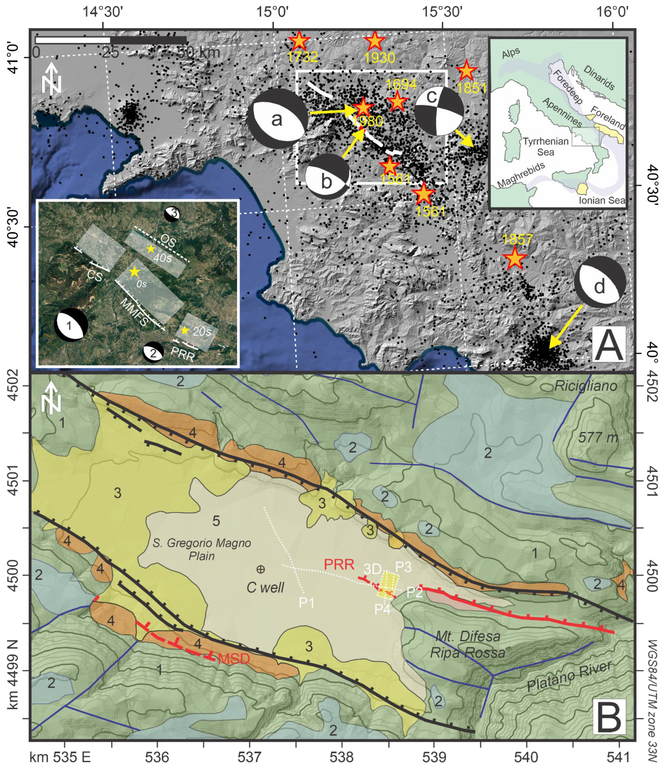 - First application of high-resolution 3D seismic imaging to a seismogenic fault in a complex intramontane basin, providing the first detailed subsurface images of a branch of the causative fault of the 1980 Mw 6.9 Irpinia Earthquake and associated depocenter.