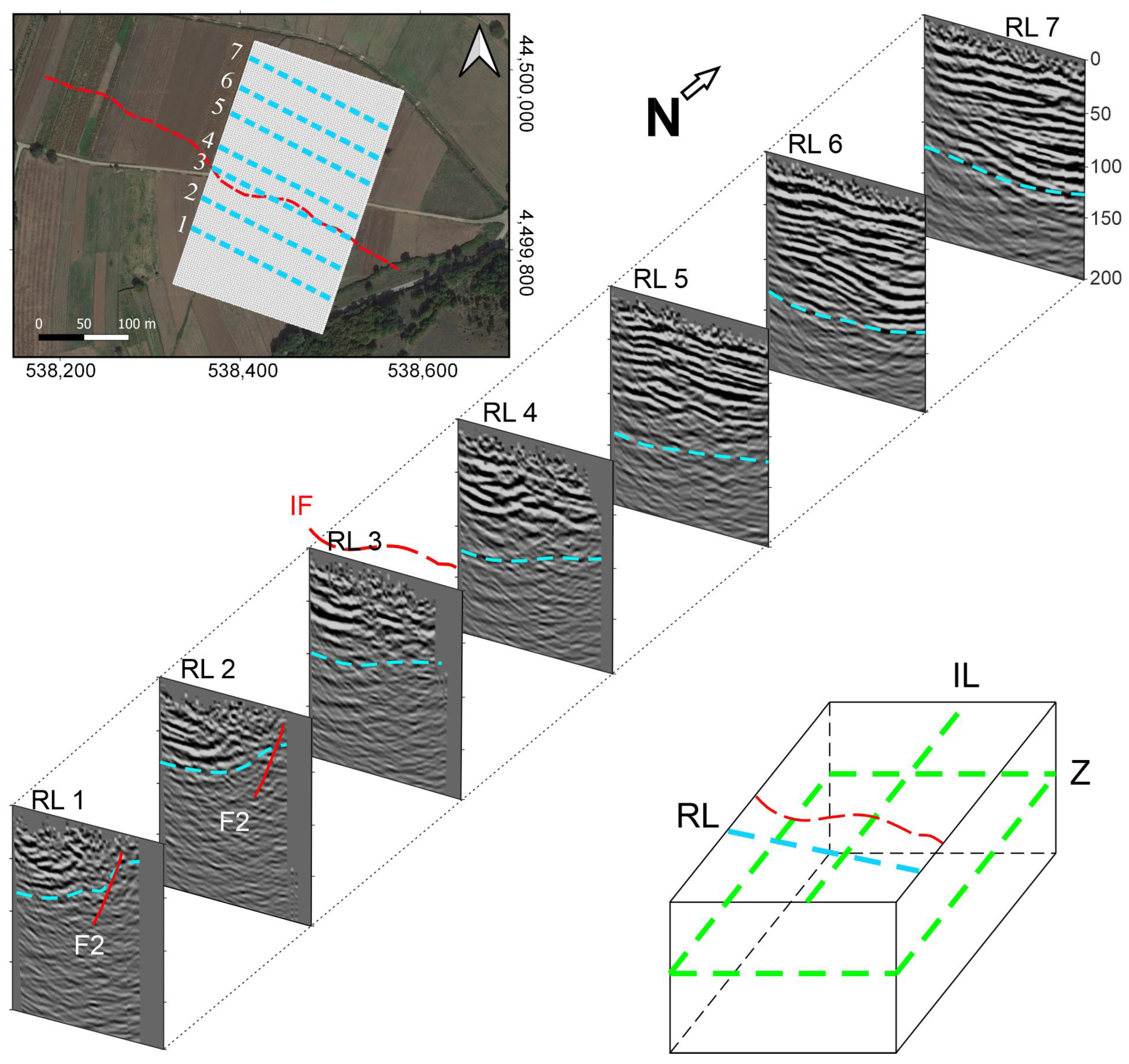 Bruno, P.P.G.; Ferrara, G.; Improta, L.; Maraio, S. 3D High-Resolution Seismic Imaging of Elusive Seismogenic Faults: The Pantano-Ripa Rossa Fault, Southern Italy. Remote Sens. 2025, 17, 3717. https://doi.org/10.3390/rs17223717