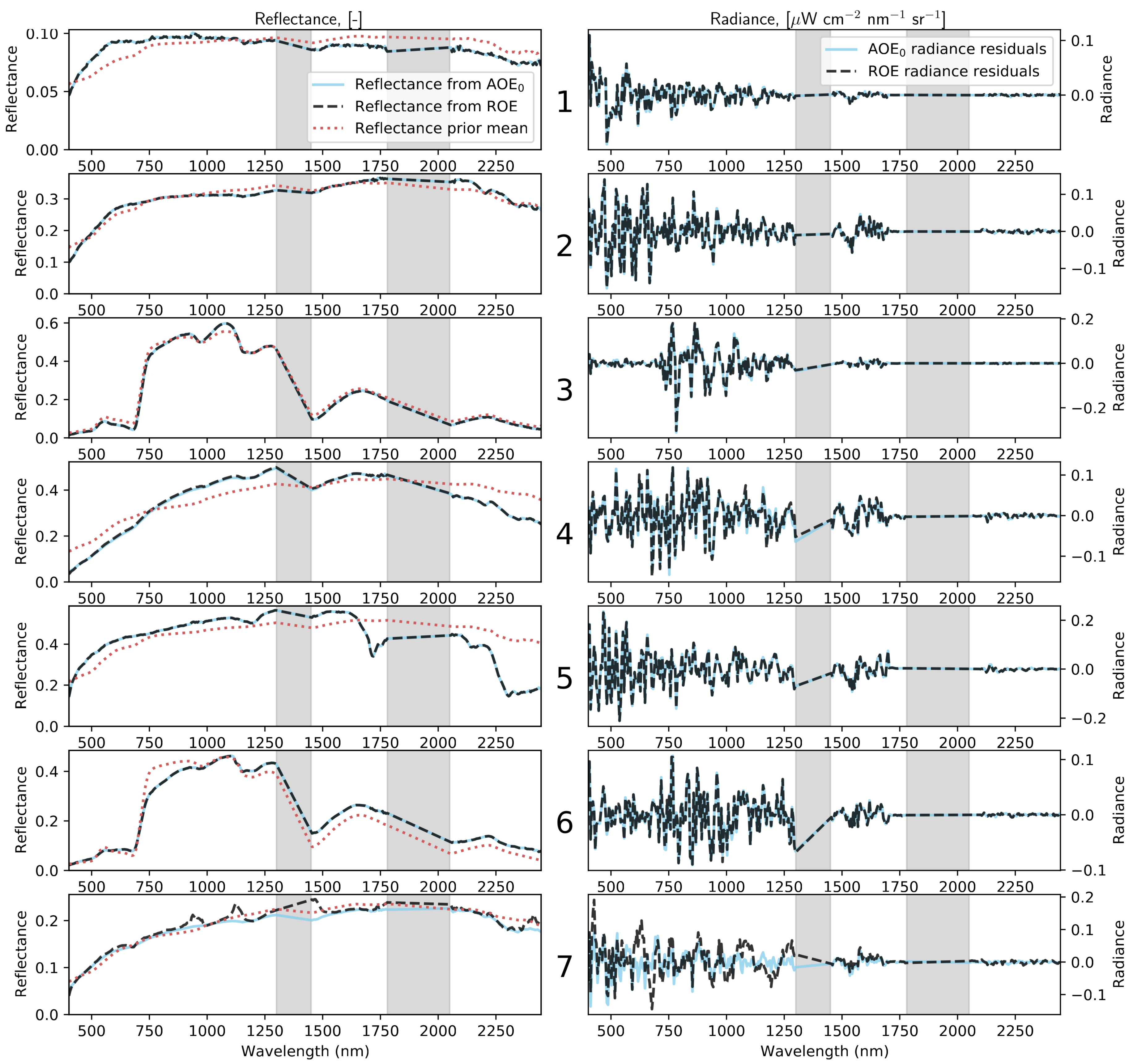 Figure 8 shows for seven example pixels how the retrieved reflectances from ROE and AOE