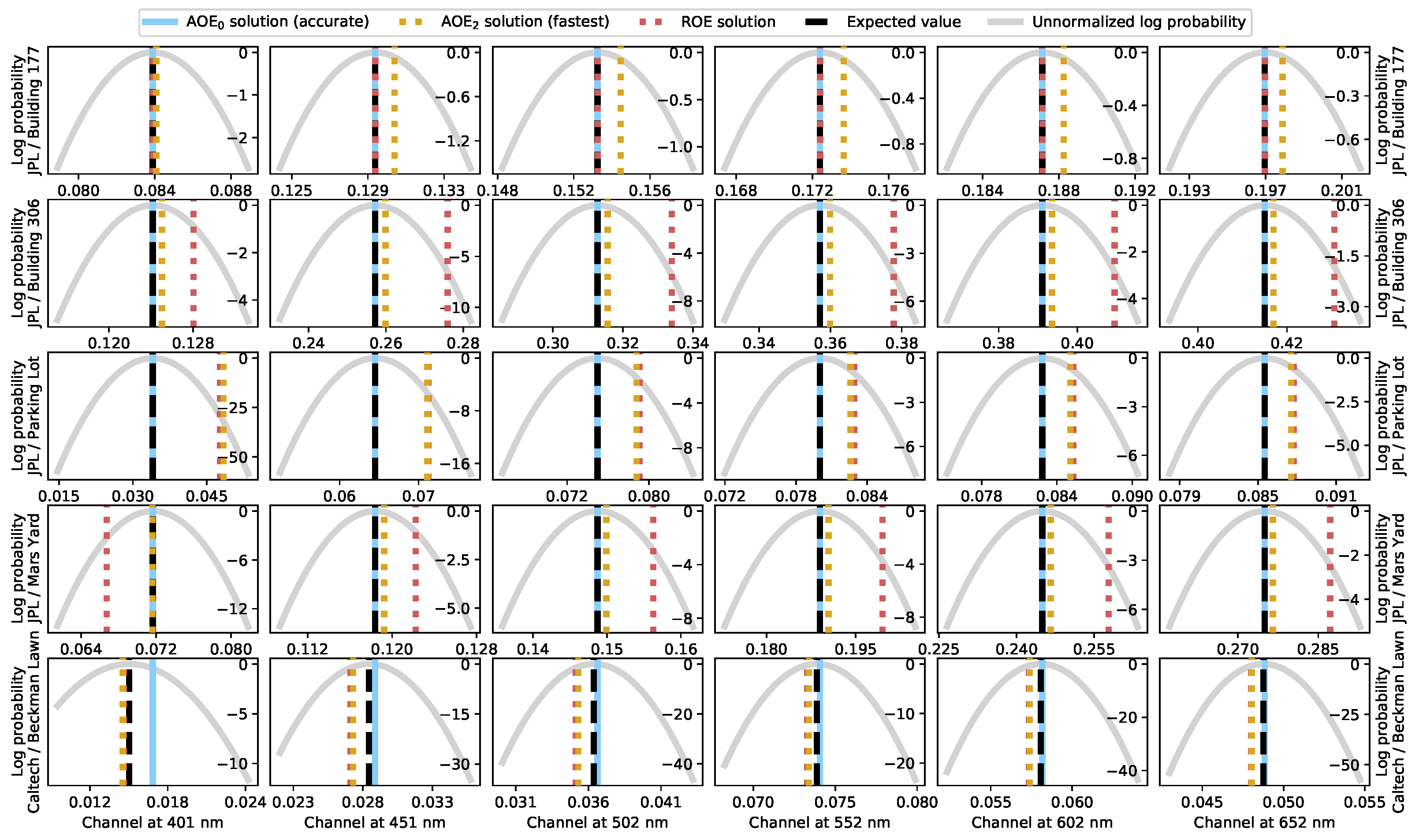 In this paper, we introduce the accelerated optimal estimation (AOE) algorithm, which is a modification of the OE algorithm discussed above. The AOE algorithm simplifies the joint state estimation problem to a degree that enables probabilistic surface reflectance retrievals in one to two milliseconds on one CPU core—up to 300 times faster than our reference OE implementation. We then use Markov chain Monte Carlo (MCMC) [