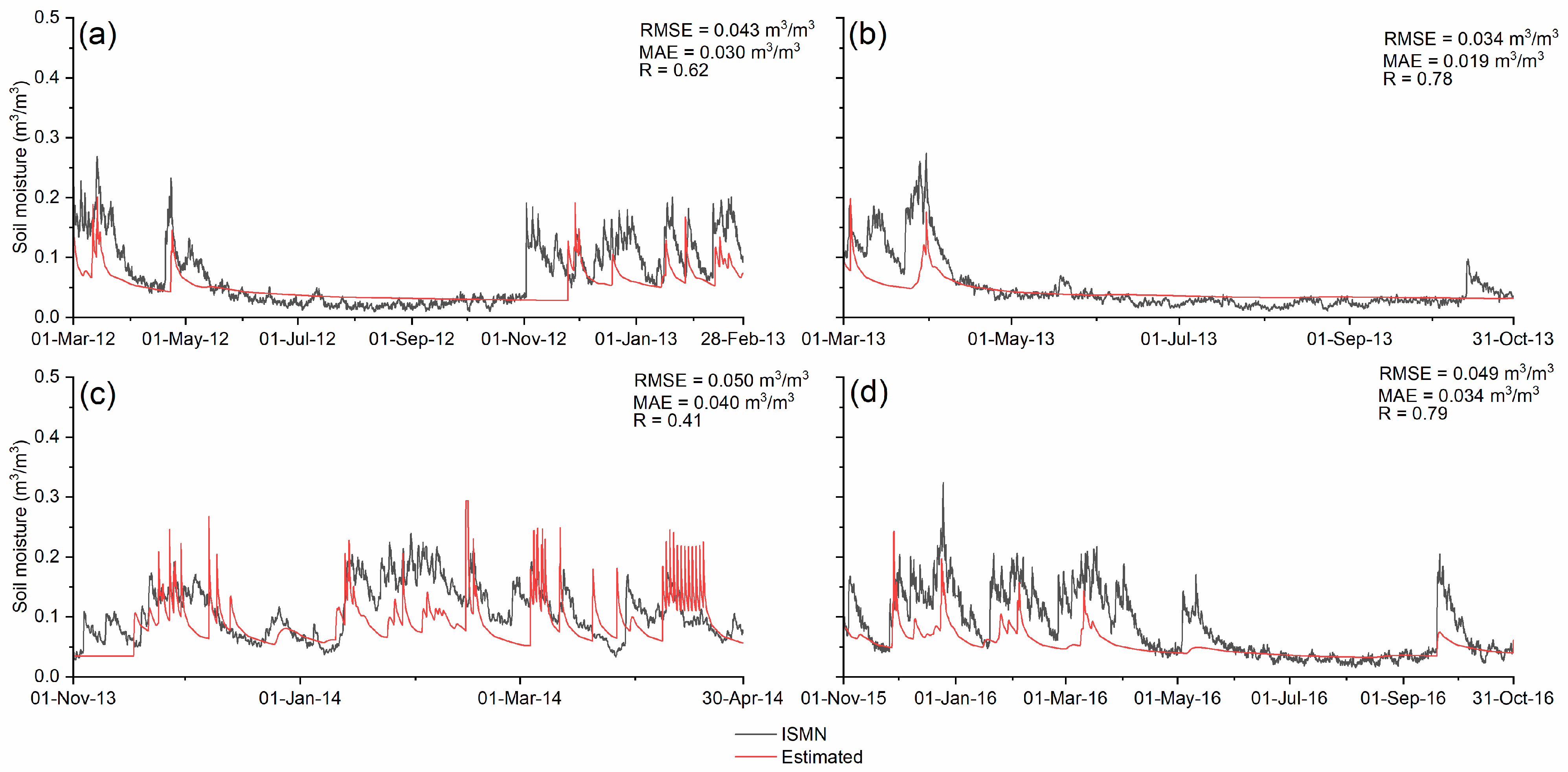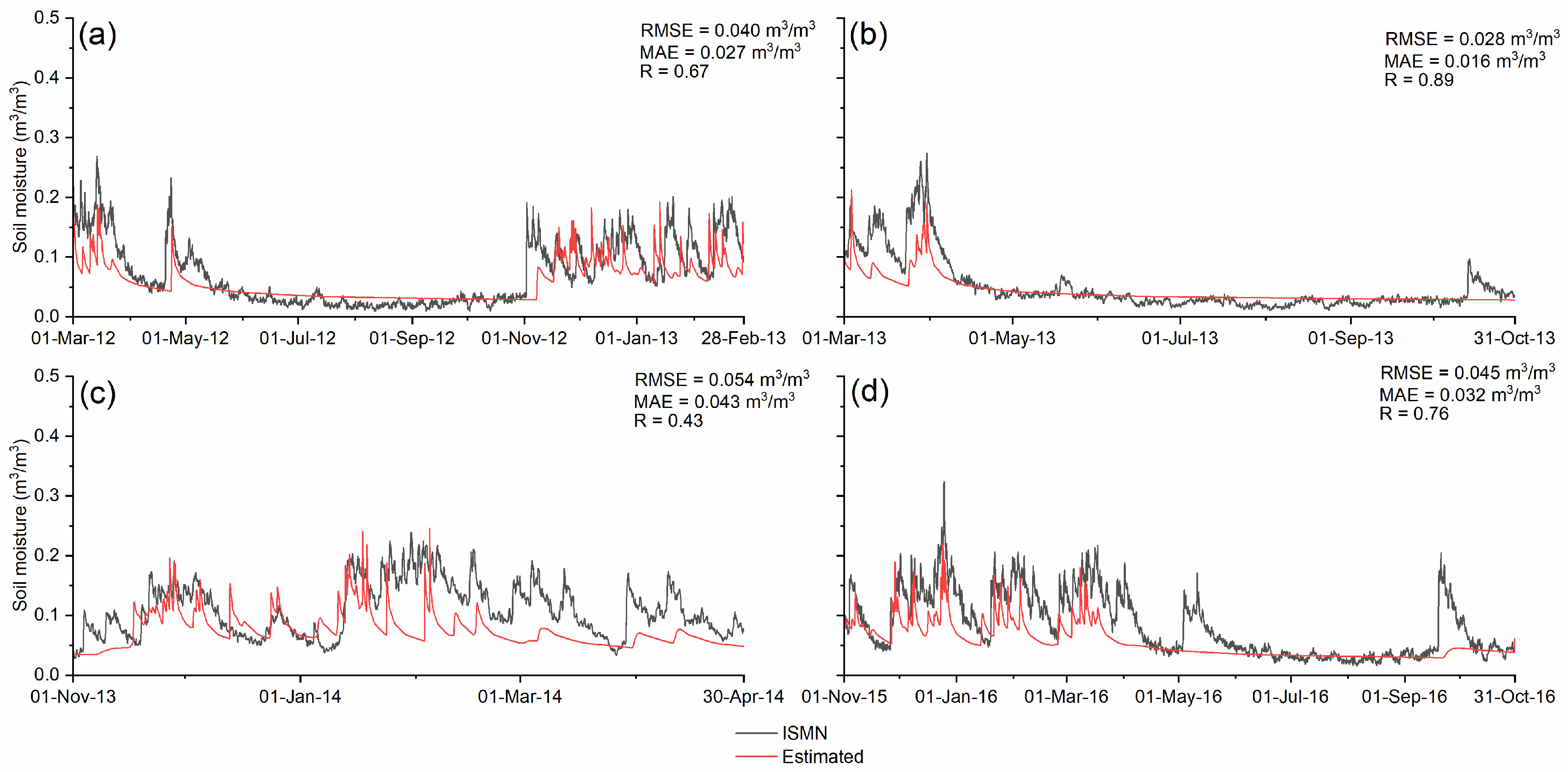 3.2. Estimated Soil Moisture with CHRS-PERSIANN