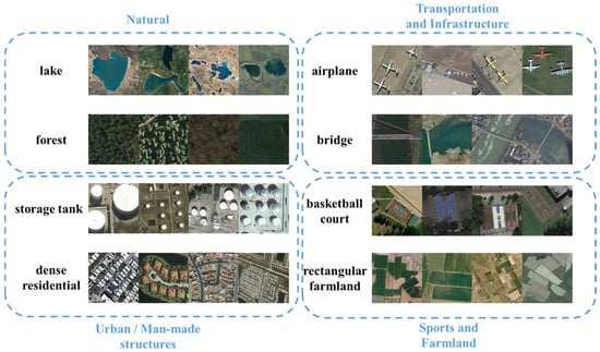 - Xia, G.-S.; Hu, J.; Hu, F.; Shi, B.; Bai, X.; Zhong, Y.; Zhang, L.; Lu, X. AID: A Benchmark Dataset for Performance Evaluation of Aerial Scene Classification. IEEE Trans. Geosci. Remote Sens. 2017, 55, 3965–3981. [Google Scholar] [CrossRef]