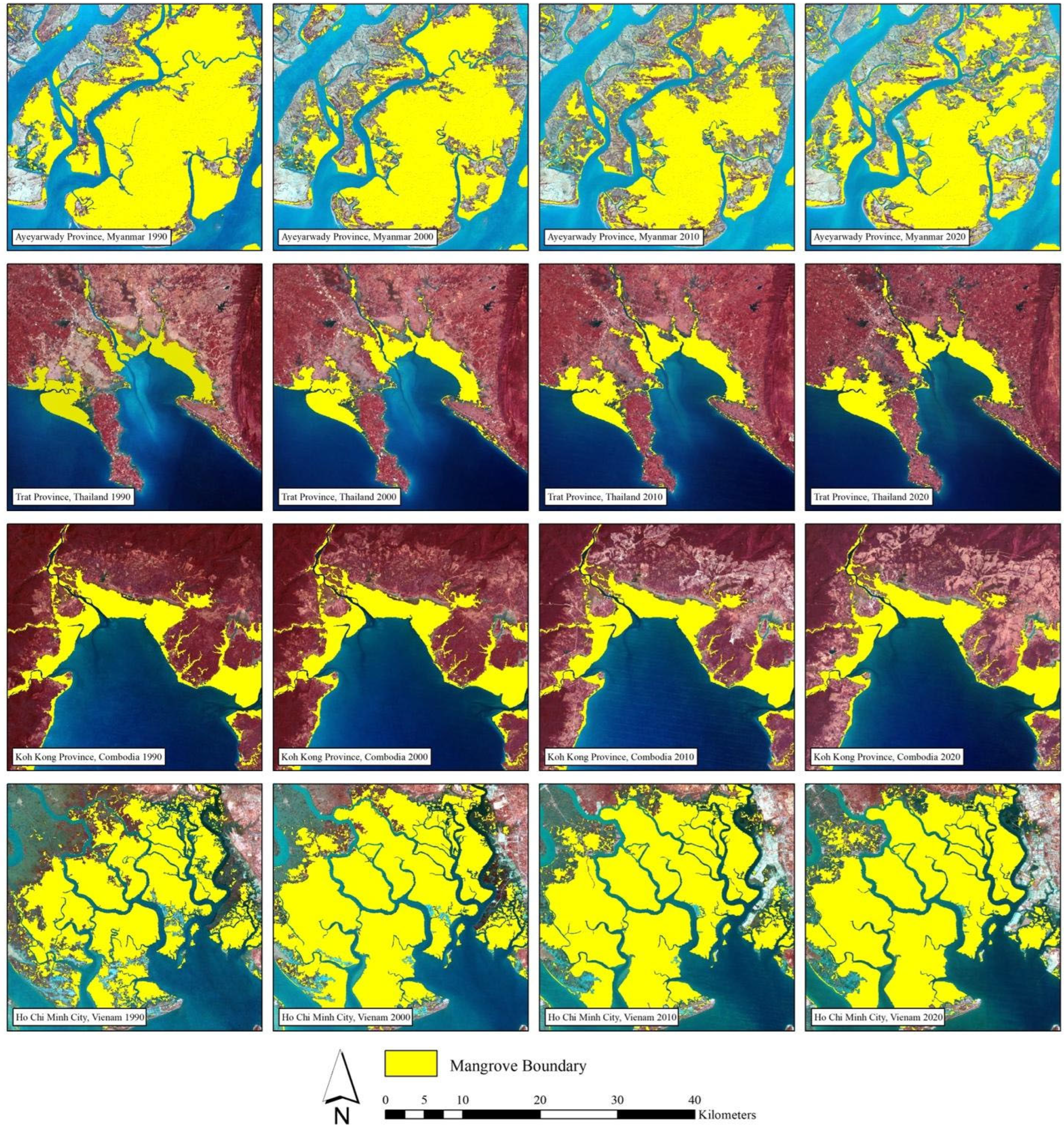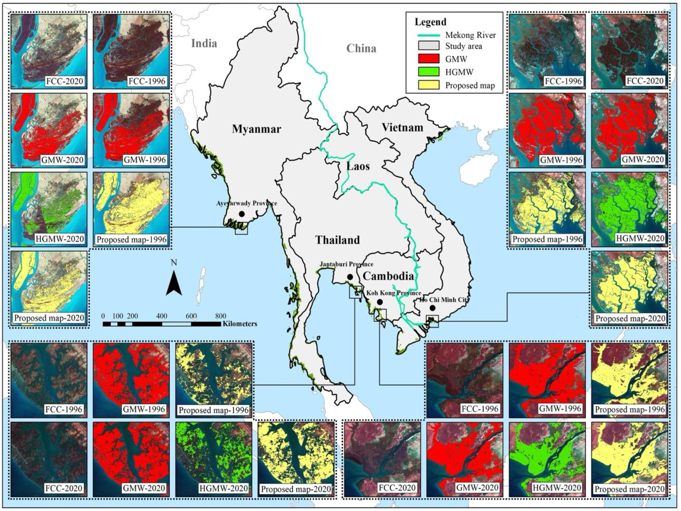 Mangrove forest areas have inevitably been dynamic over the years, depending on the conservation planning of each country. Mangrove mapping helps identify the extent and distribution of this forest, which is essential for conservation efforts. This enables monitoring changes over time and aids in crafting sustainable management plans. To achieve this task, remote sensing techniques play a crucial role in mapping and monitoring long-term mangrove forests over a large scale [13].