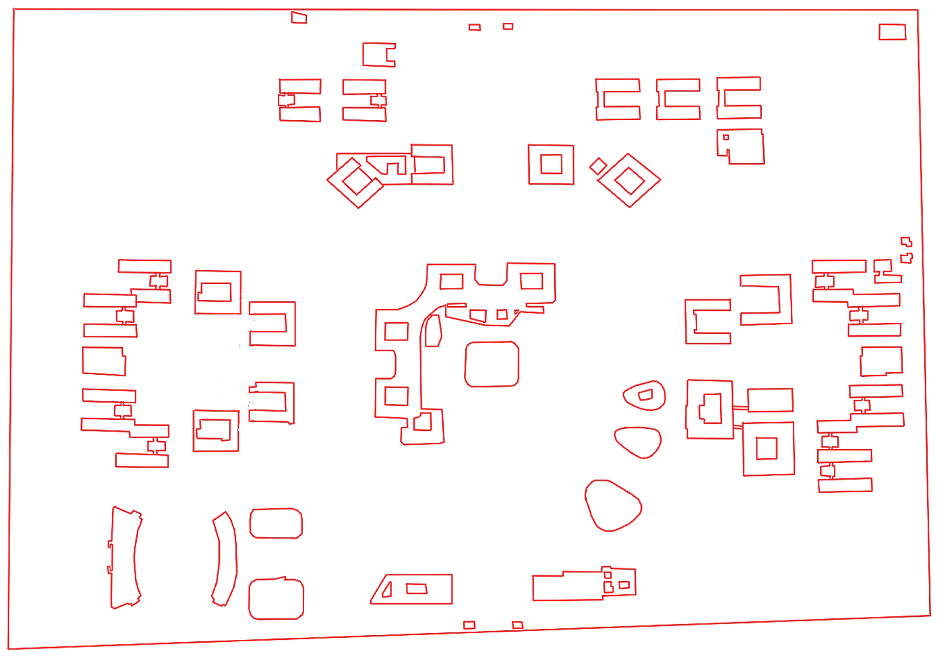 Figure 8), but also overfit the connection area between the corridor and the main building into a continuous entity, making it impossible to identify the independent contour of the corridor. Although the GAN method retains the hollow shape to a certain extent, the corridor footprints fluctuate unstably and connection nodes are blurred and adhered. OP-HT has difficulty capturing the slender straight-line features of the corridor and is prone to misclassifying them as noise. Grid confuses the corridor and hollow boundaries due to resolution limitations.