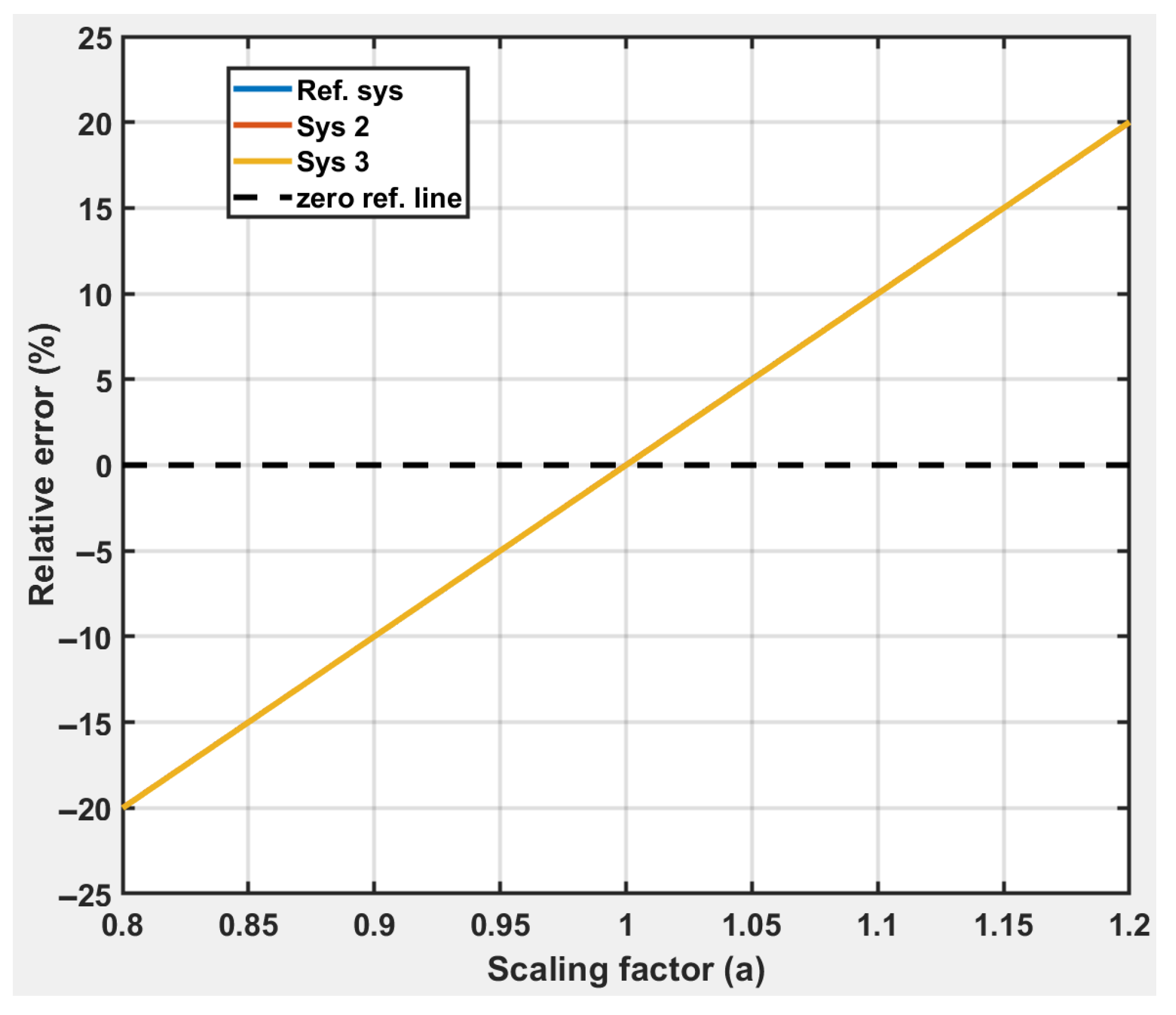 Figure 8. Interestingly, the introduction of a reference system scaling factor impacts all of the individual estimations identically which is seen from the overlap of the three lines in the figure.
