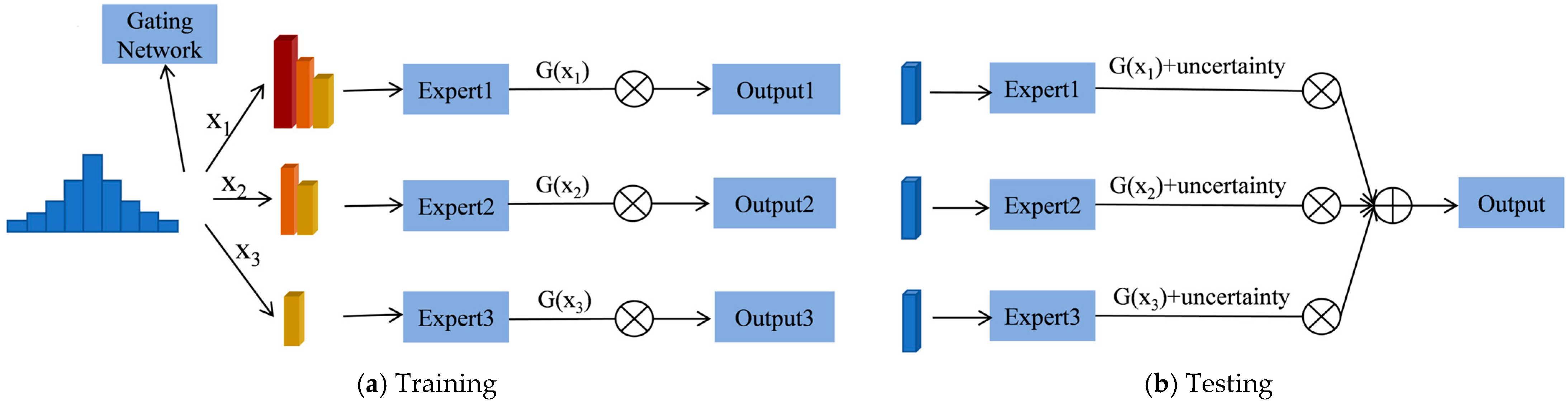 43]. Despite these improvements, the MoE still faces the challenge of slow convergence, resulting from the conflicting predictions of multiple experts. Moreover, the introduction of numerous experts significantly expands the model’s parameter space, resulting in longer training times and increased computational resource consumption. To mitigate these problems, we incorporate an uncertainty measurement mechanism that dynamically adjusts the weighting factor by evaluating the prediction confidence of each sample. This innovation combines the strengths of the MoE with uncertainty quantification to provide a more efficient and accurate solution, especially in complex agricultural classification tasks.