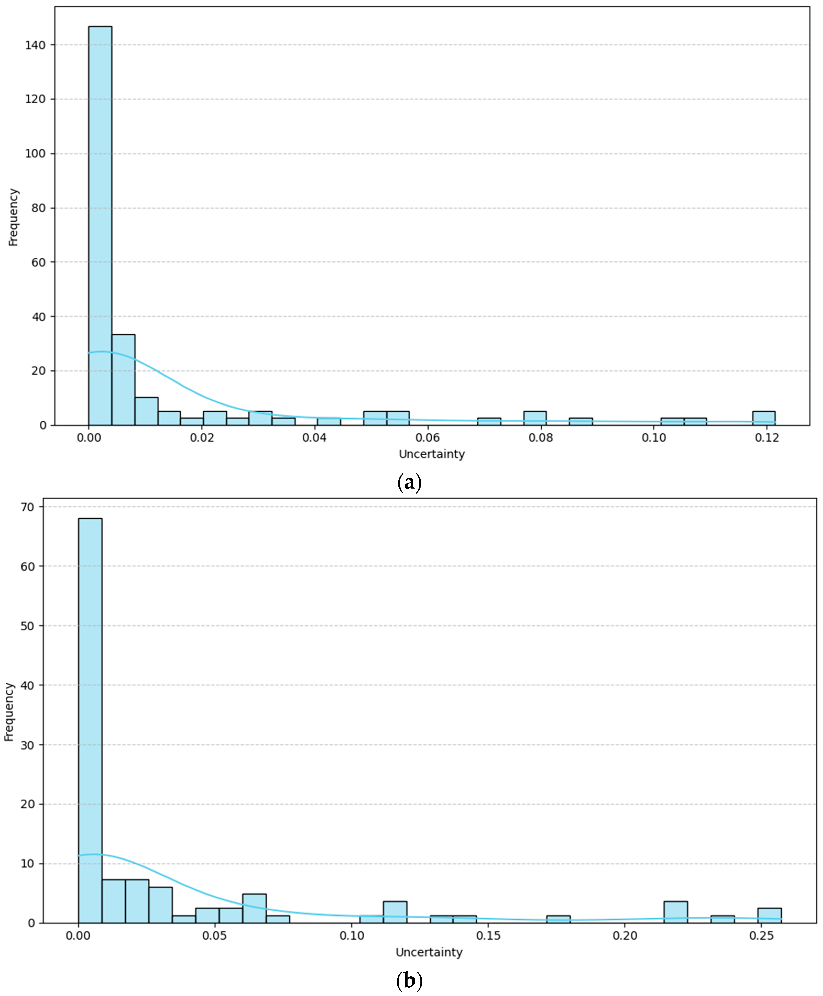 34] introduces dual-uncertainty (randomness and cognition) modelling for detecting architectural changes, significantly enhancing the Transformer’s robustness in scenarios with high intra-class variation. A systematic assessment of the uncertainty of the Earth observation segmentation model was conducted, verifying the effectiveness of the integrated and random reasoning methods in the semantic segmentation of satellite images, which can be transferred to the crop classification task [