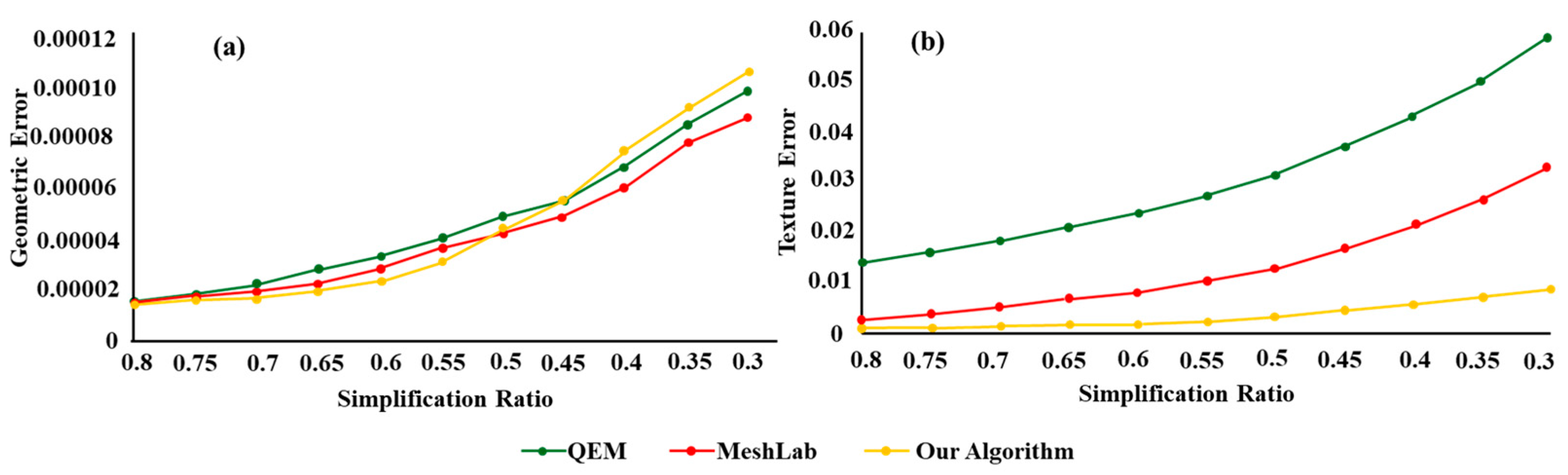 - Liu, Z.; Zhang, C.; Cai, H.; Qv, W.; Zhang, S. A model simplification algorithm for 3D reconstruction. Remote Sens. 2022, 14, 4216. [Google Scholar] [CrossRef]