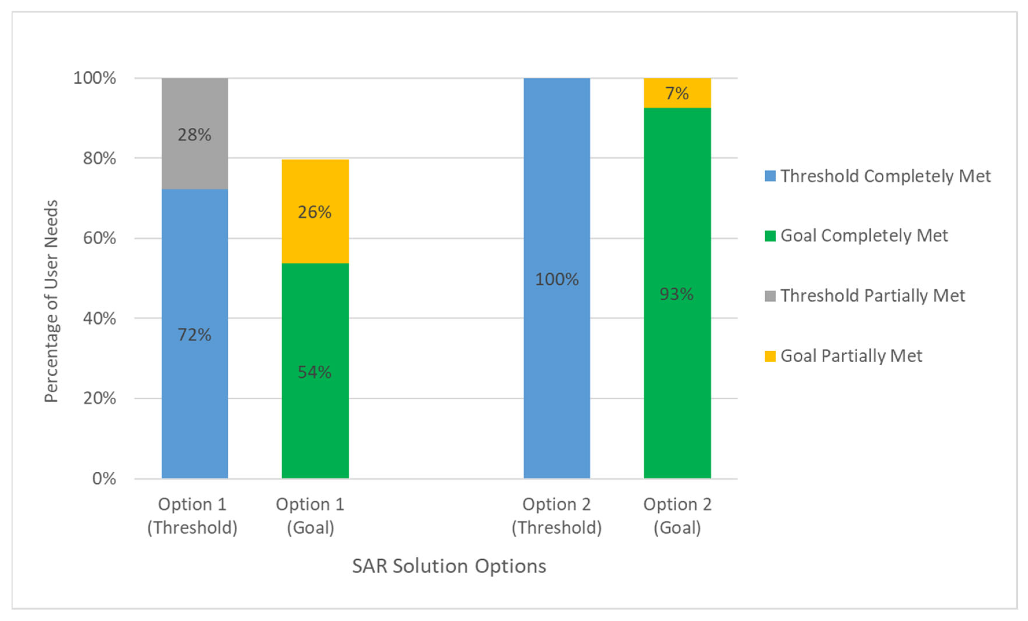 Figure 22. Compliance of two Solution options (with 3 and 5 satellites) to C-band SAR user needs.
