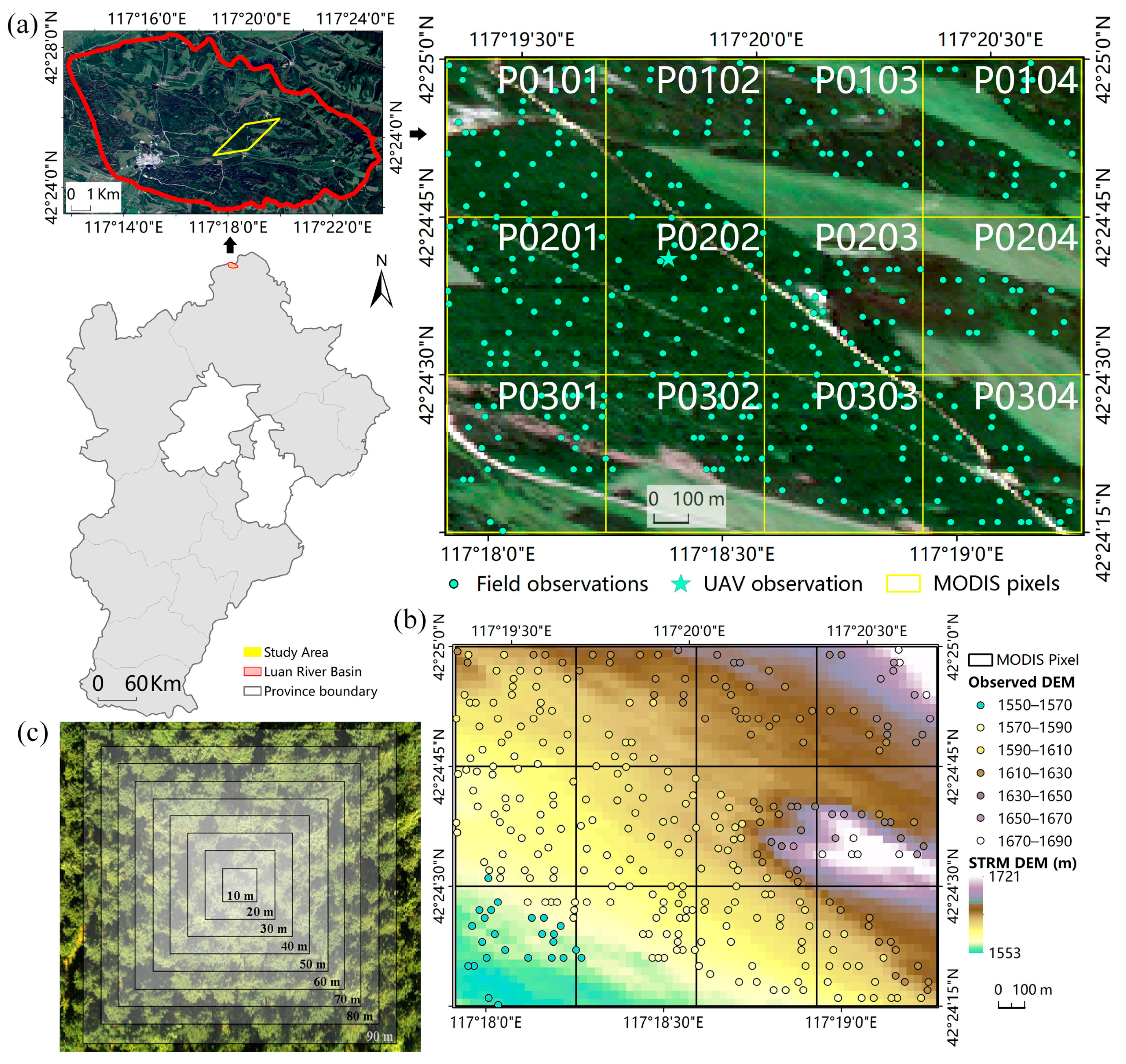 - Mu, X.; Yan, G.; Zhou, H.; Pang, Y.; QIU, F.; Zhang, Q.; Zhang, Y.; Xie, D.; Zhou, Y.; Zhao, T.; et al. Airborne comprehensive remote sensing experiment of forest and grass resources in Xiaoluan River Basin. J. Natl. Remote Sens. Bull. 2021, 25, 888–903. [Google Scholar] [CrossRef]