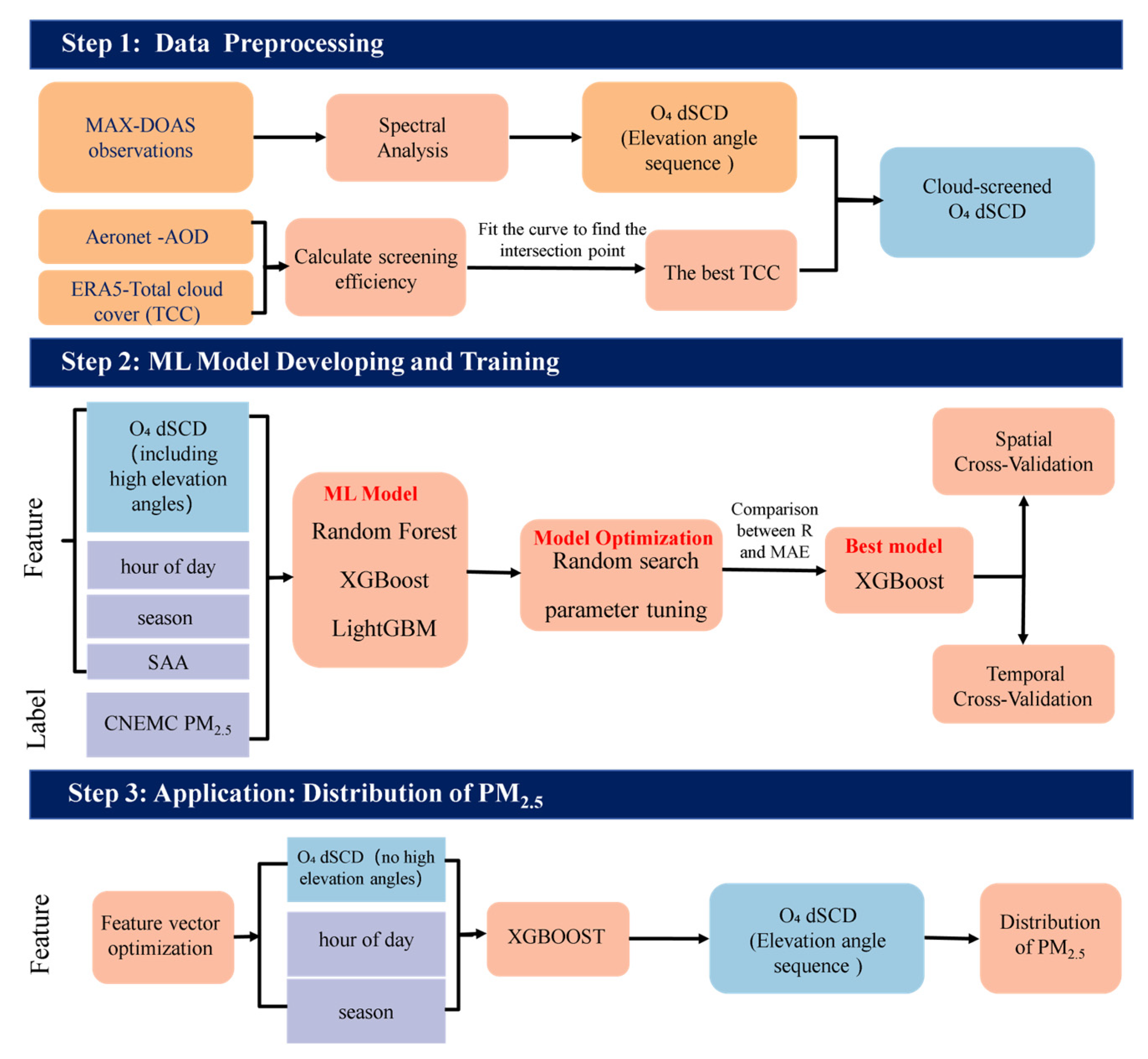 - Direct estimation is performed of near-ground-surface PM2.5 concentrations by integrating spectral analysis and machine learning approaches.