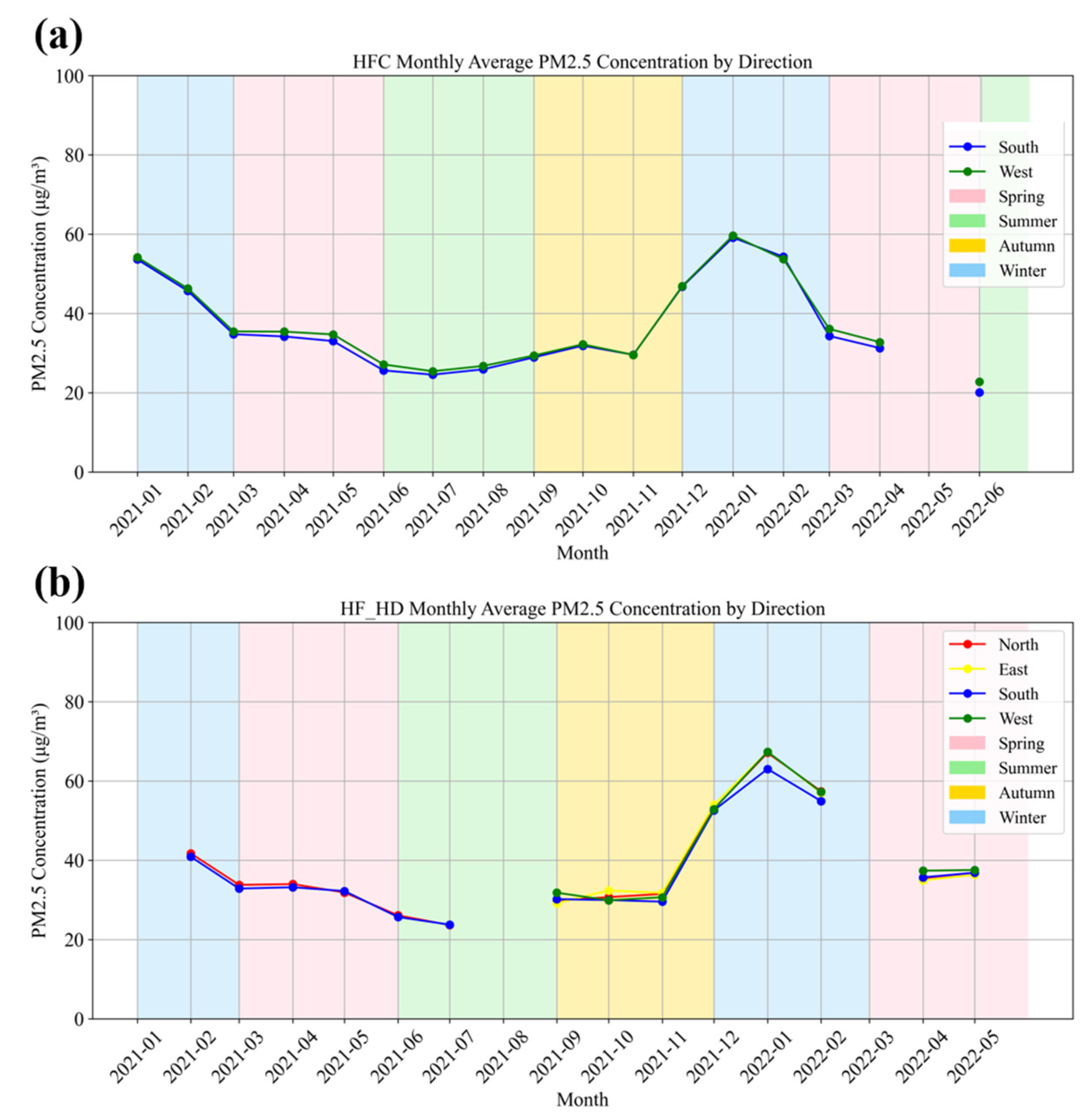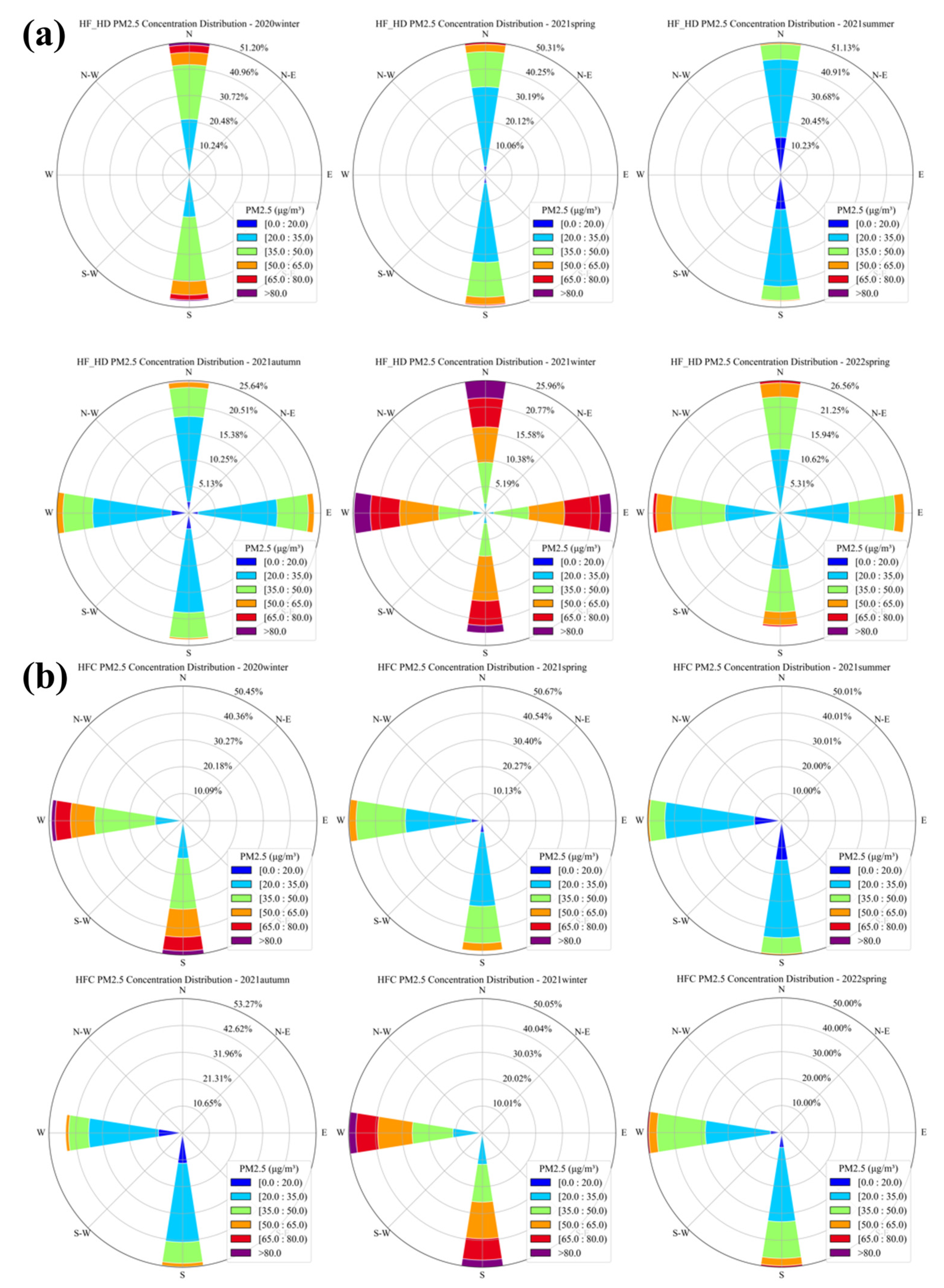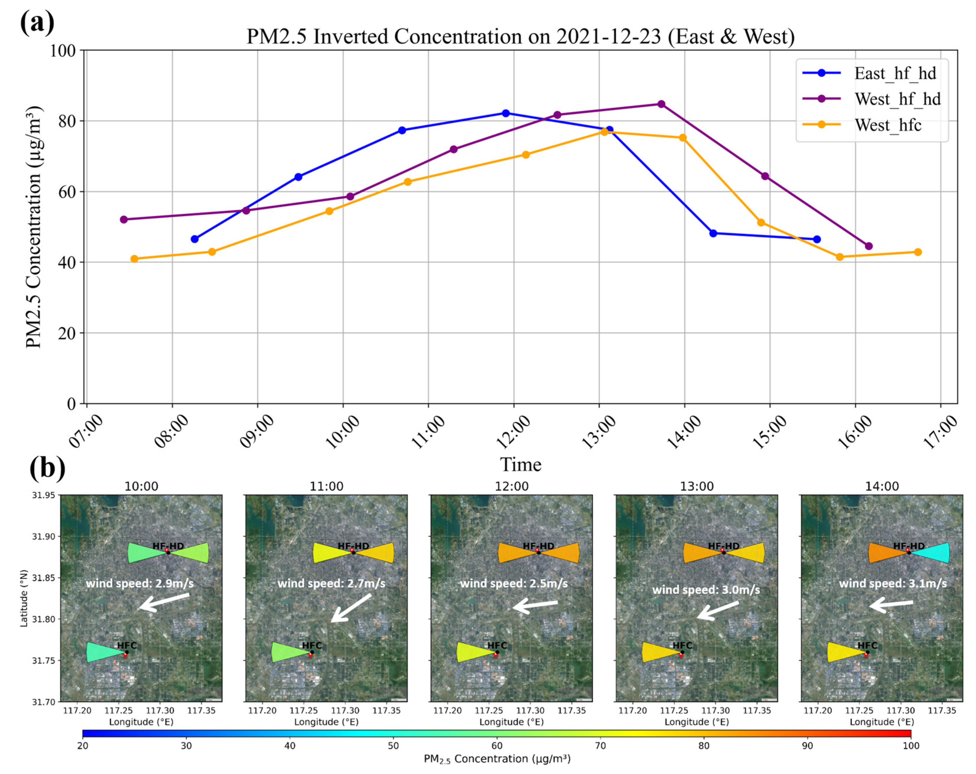 3.5. Temporal Variation in Horizontal Distribution of PM2.5 in Hefei